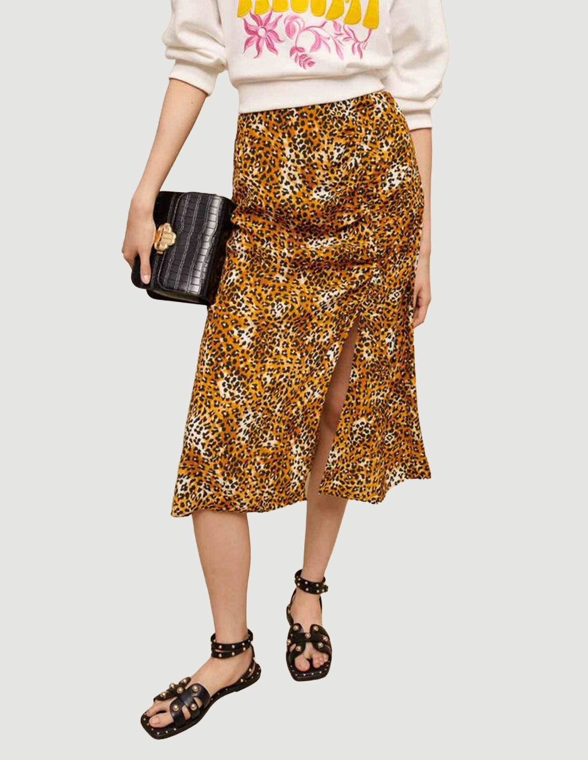 Maje - femme skirt , t38 , bege leopard , style mfpju00984Composition & Care: