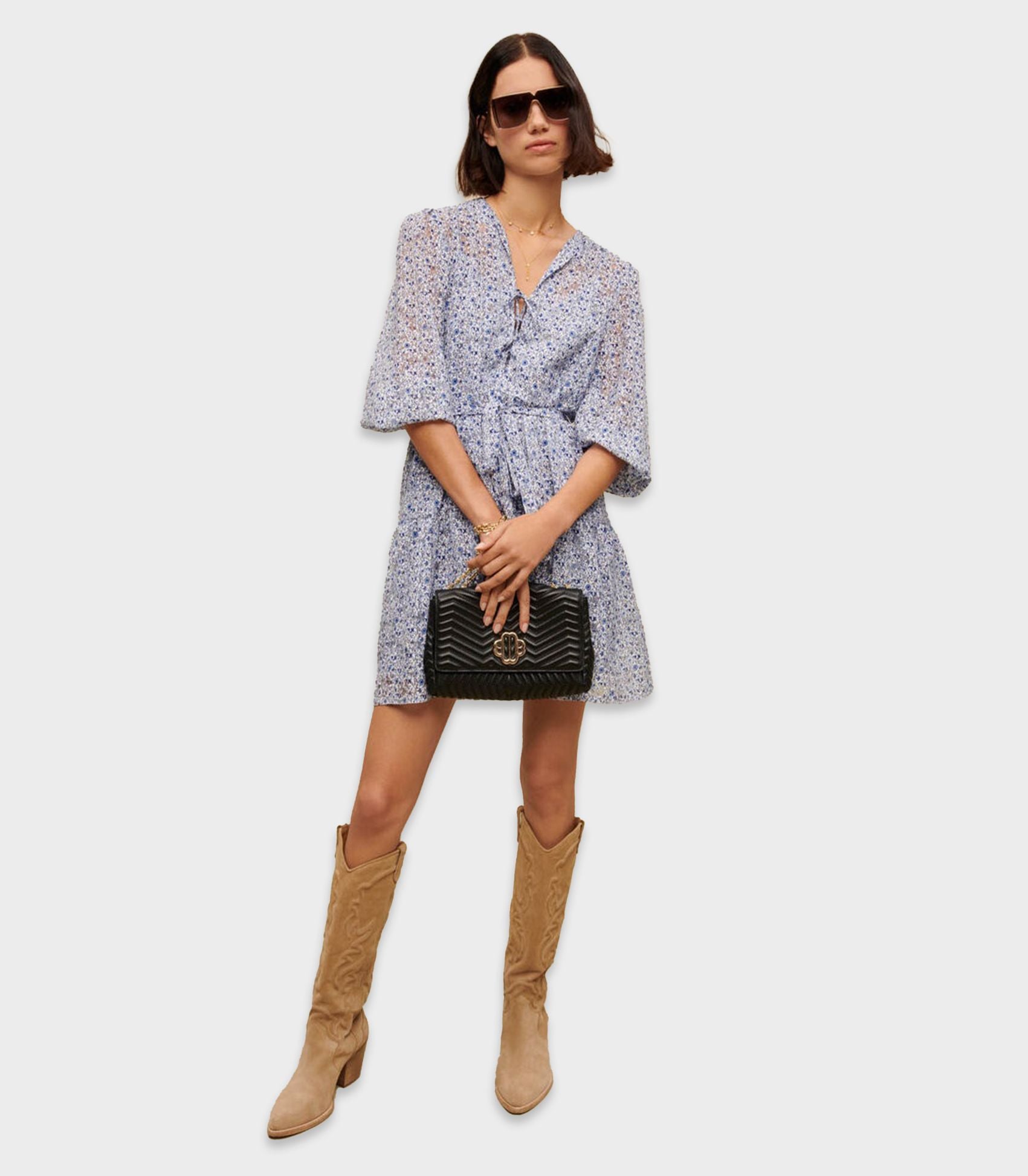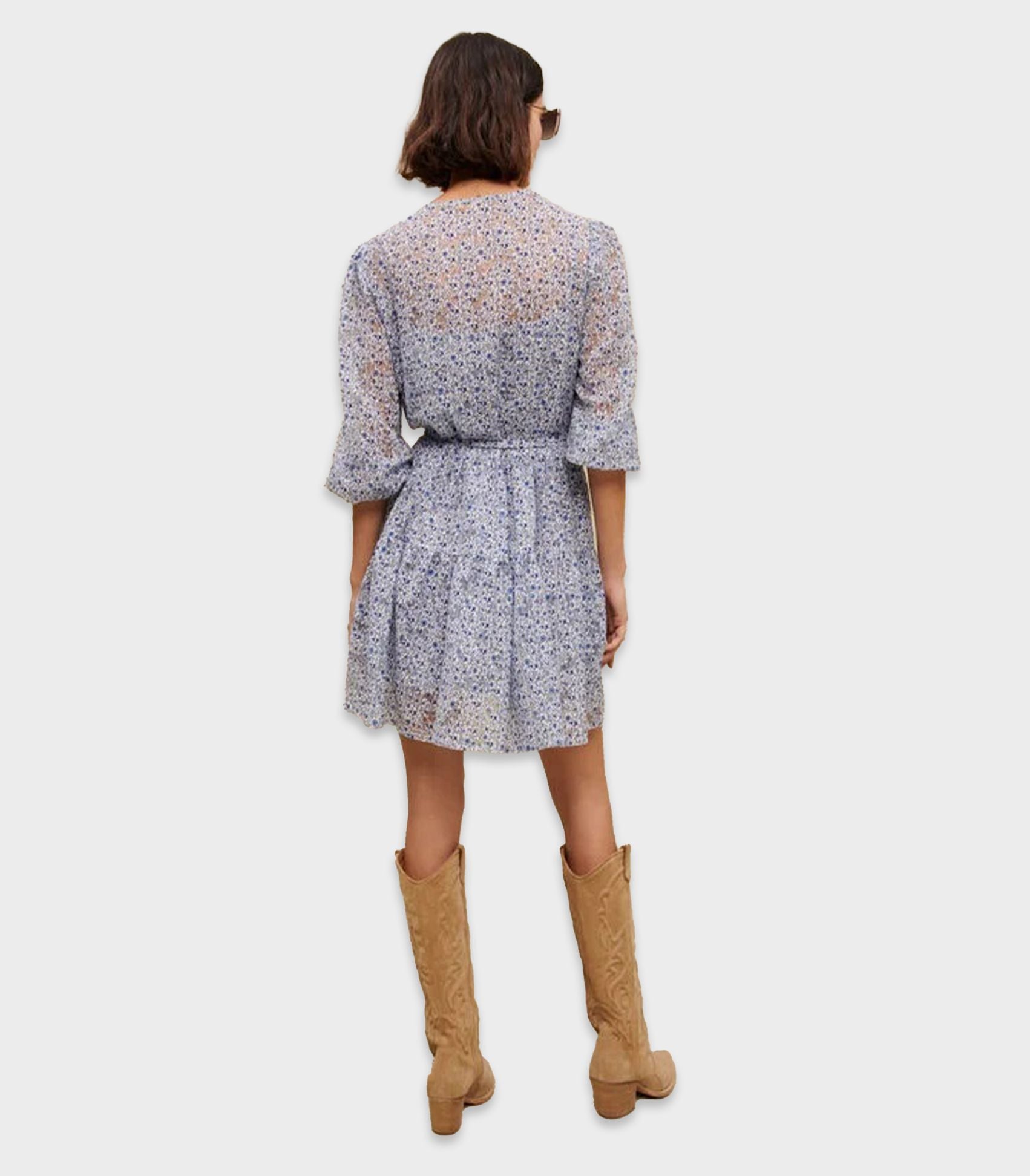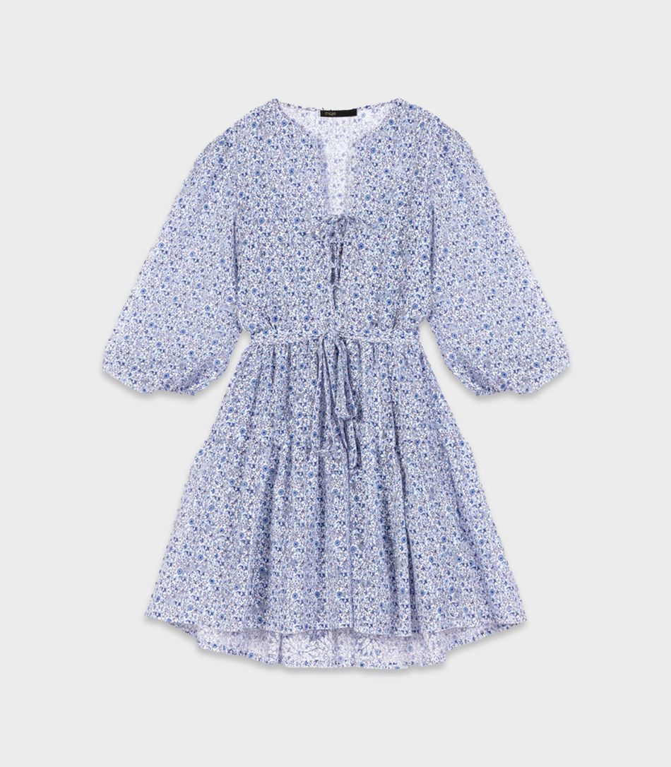Maje - femme dress , t40 , blue , style mfpro03039This baby doll dress with a belt at the waist is an iconic Maje style. This season it comes in a burnout sky blue print enhanced by a transparent effect. The lining is also printed. Ideal for sunny days.