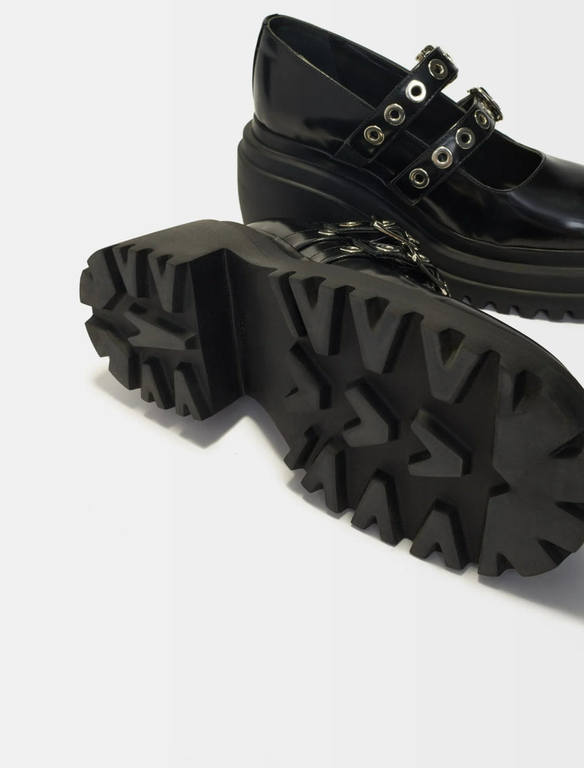 • Mary jane platforms with silver eyelets