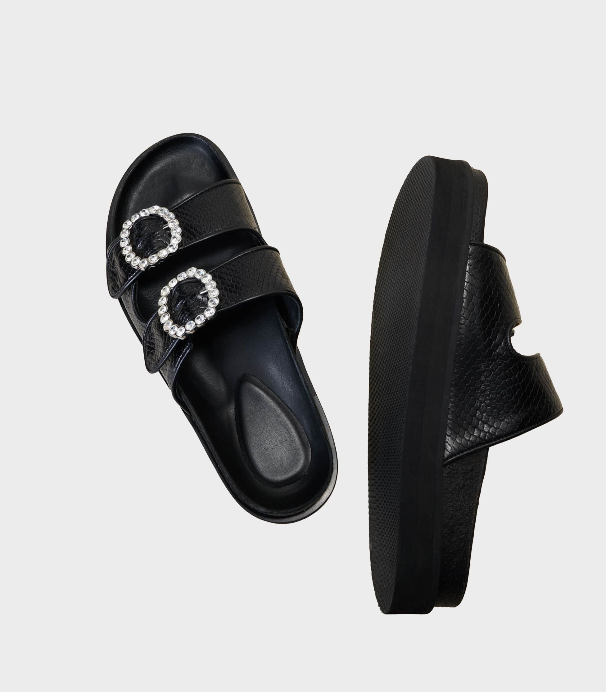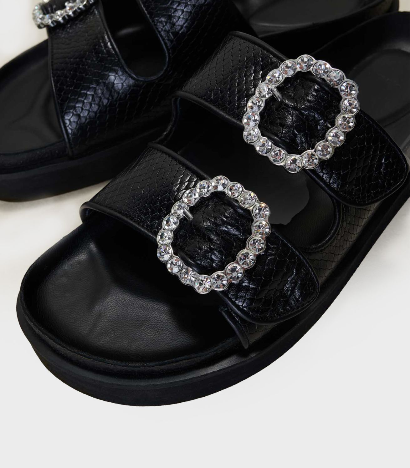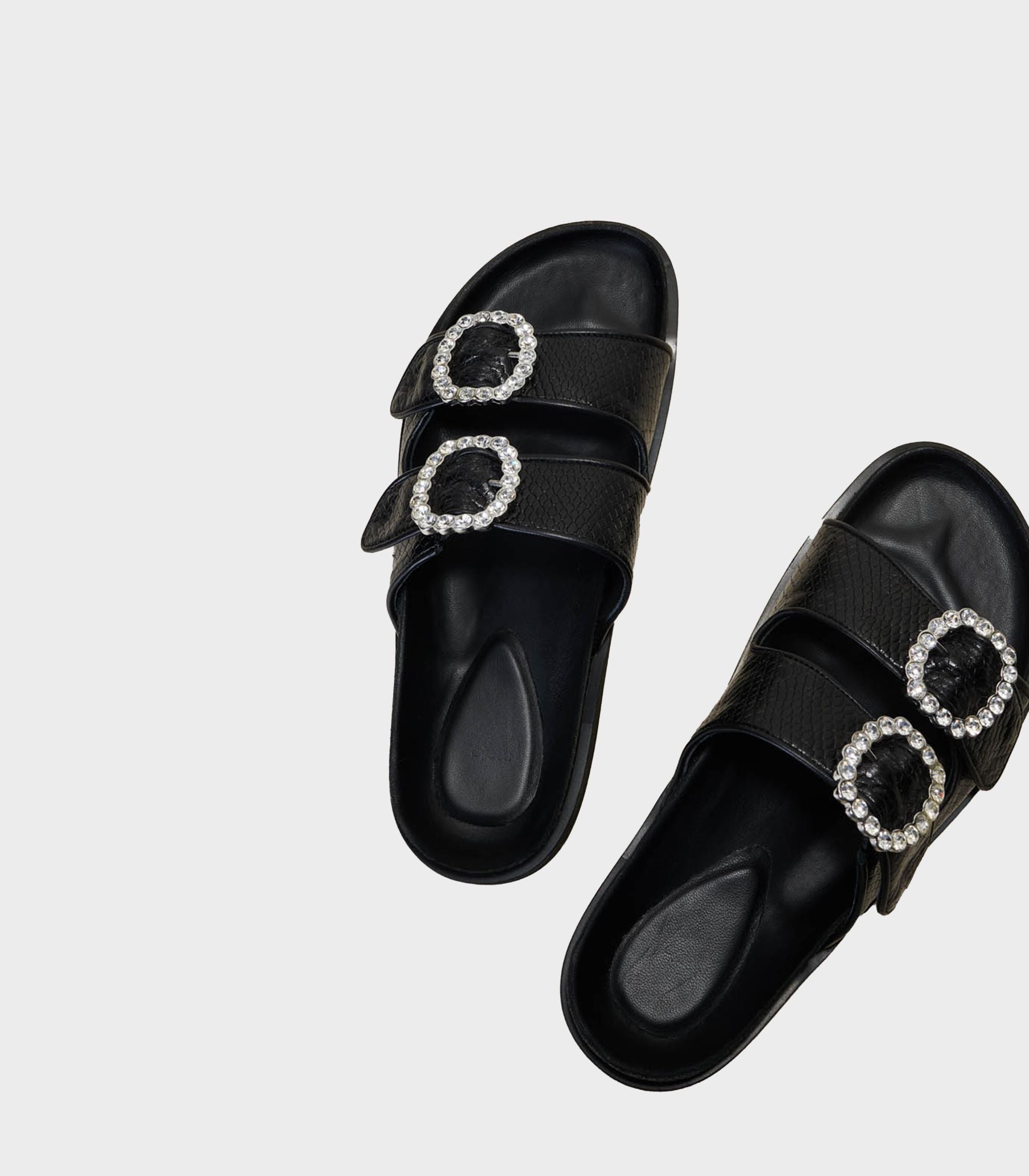• Sandals with rhinestone buckles