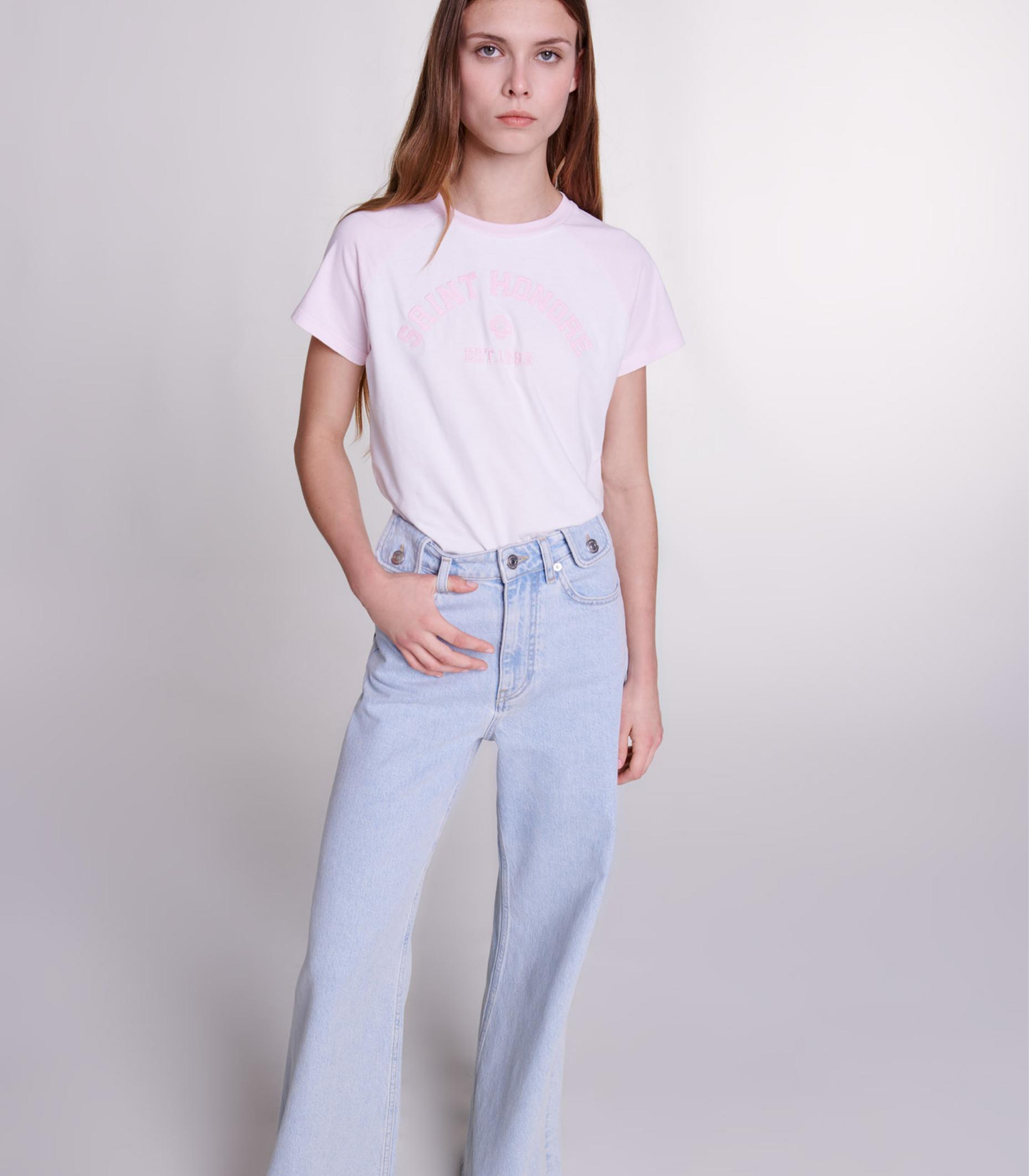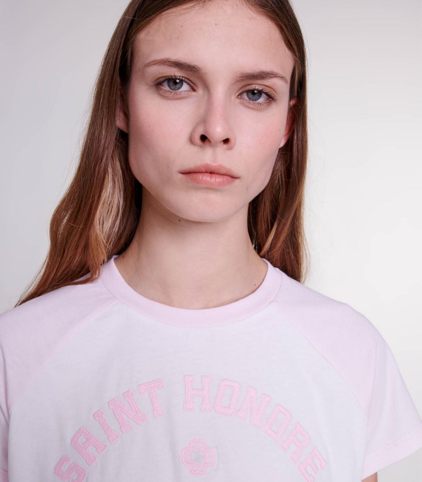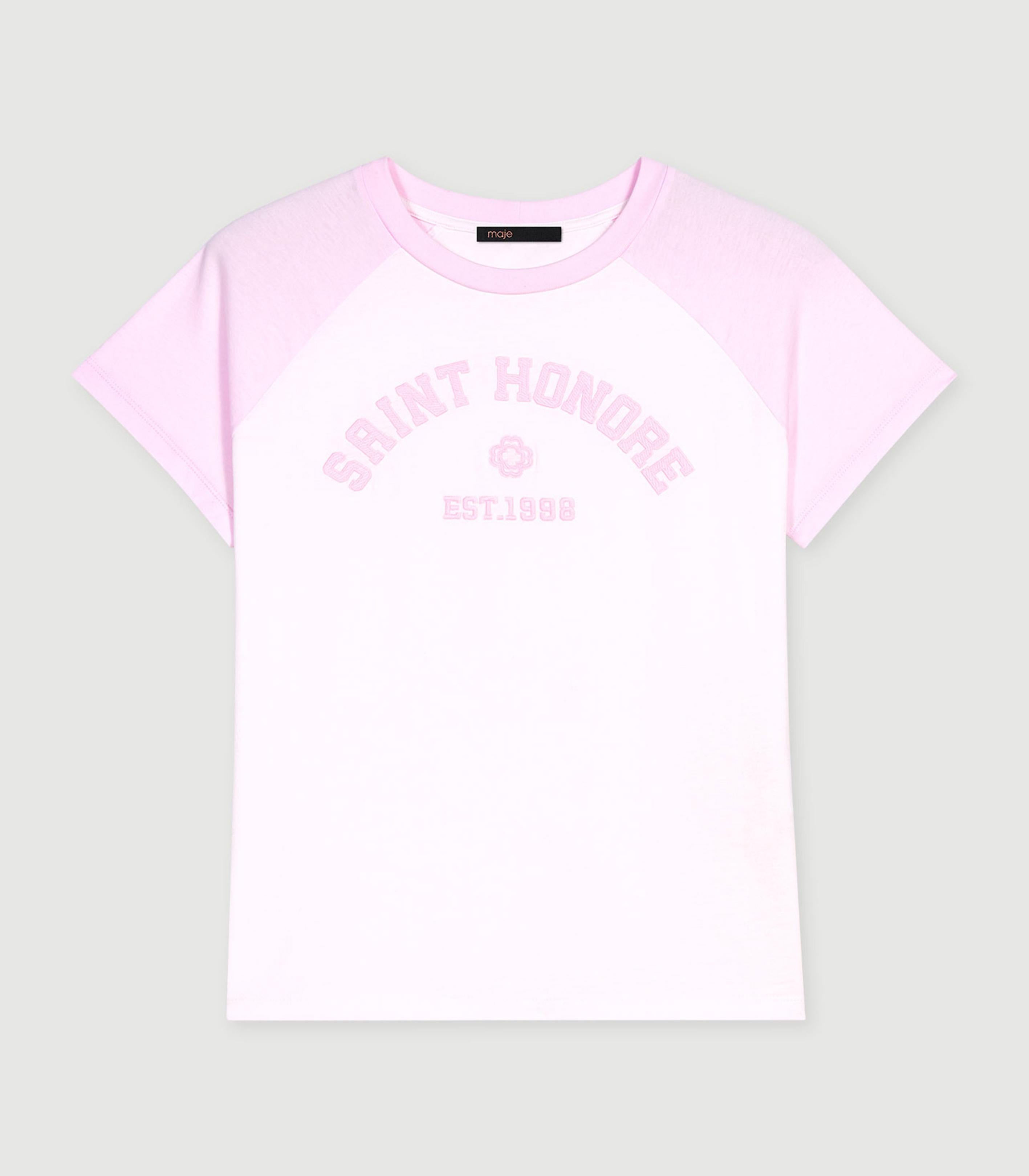 • Inspired by the varsity style, this pastel-coloured cotton T-shirt is a comfortable, stylish addition to your seasonal outfits. It has a round neck, contrasting raglan sleeves and finely embroidered text: 'Saint Honoré Est 1998'.