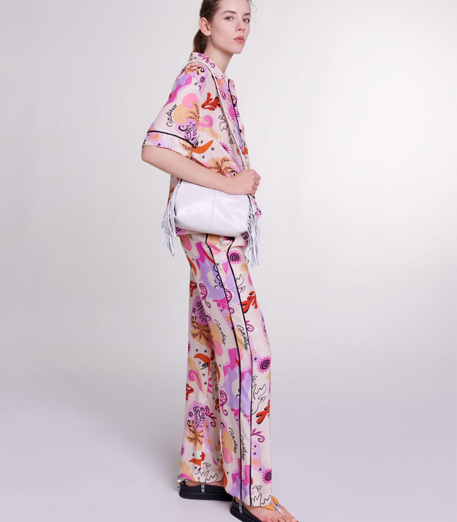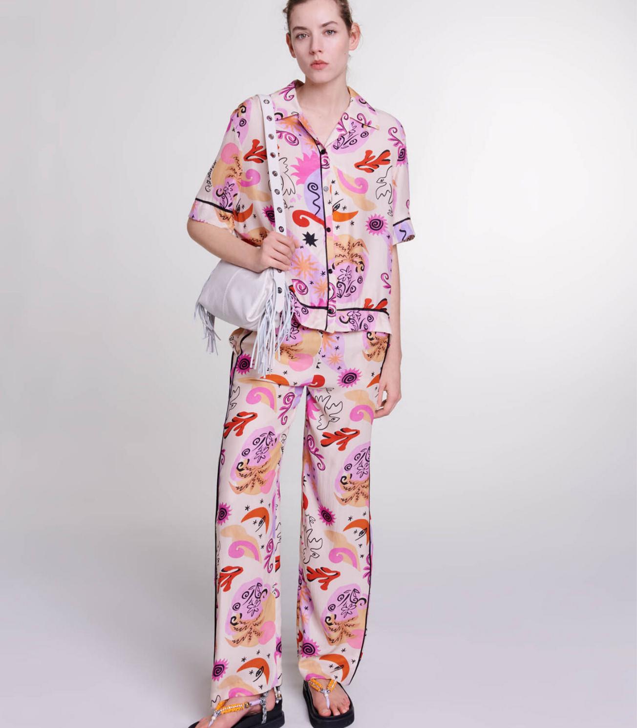 • This floaty, dainty pyjama-style shirt features the collection's signature 'Paradisio' pattern, emphasised by contrasting piping. Crafted from dainty, floaty silk, it features a shirt collar, a button fastening and short sleeves for a chic, structured look.