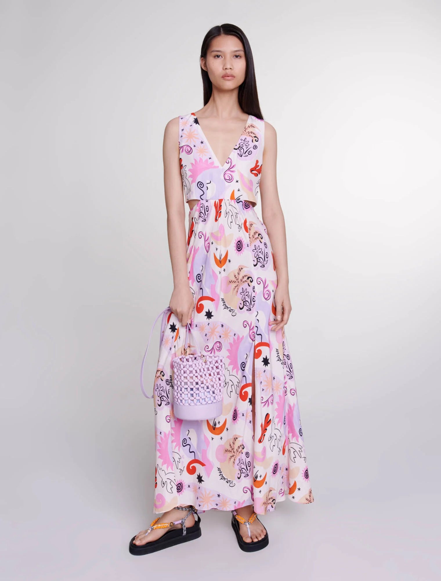 • Cutaway silk maxi dress