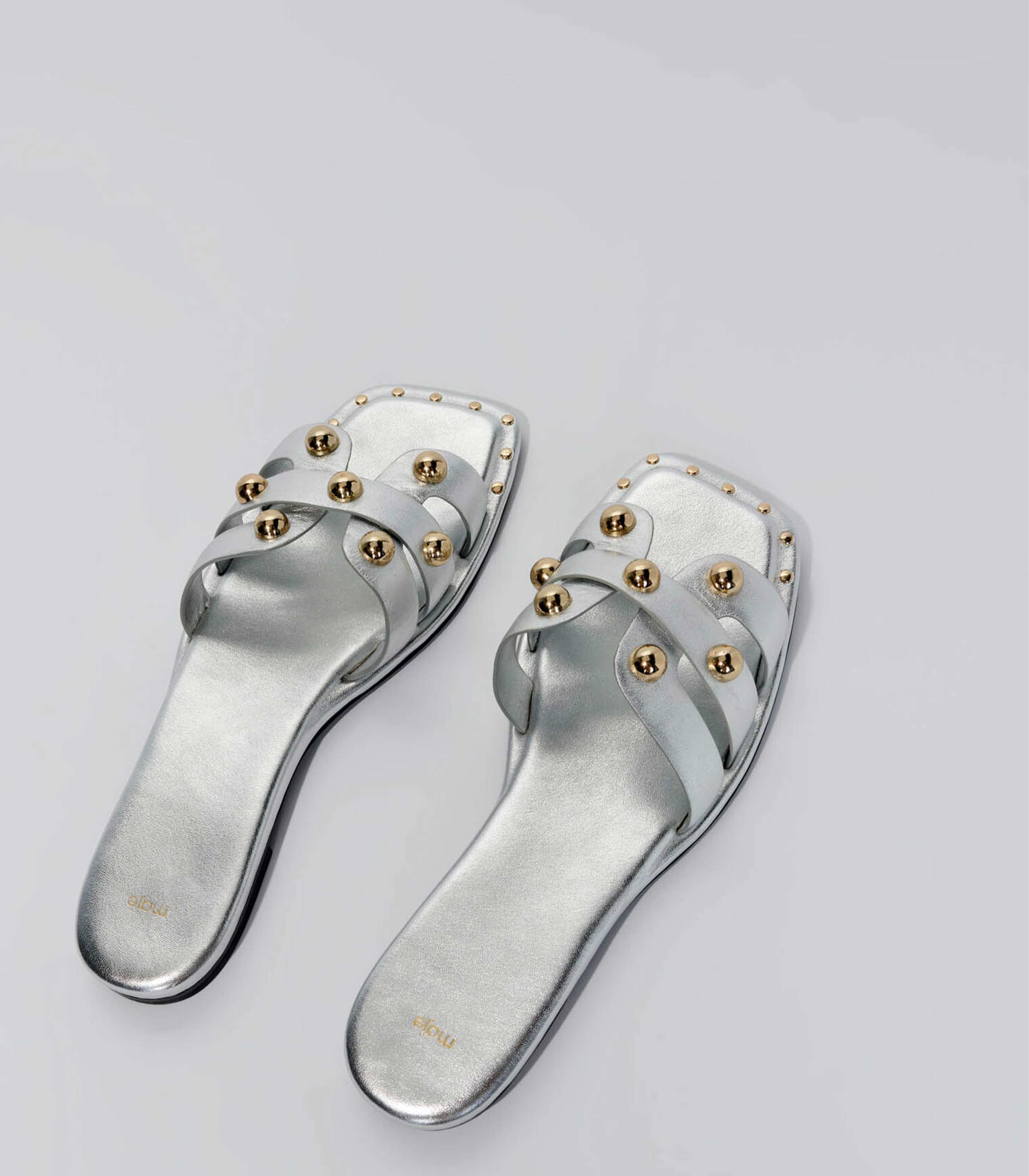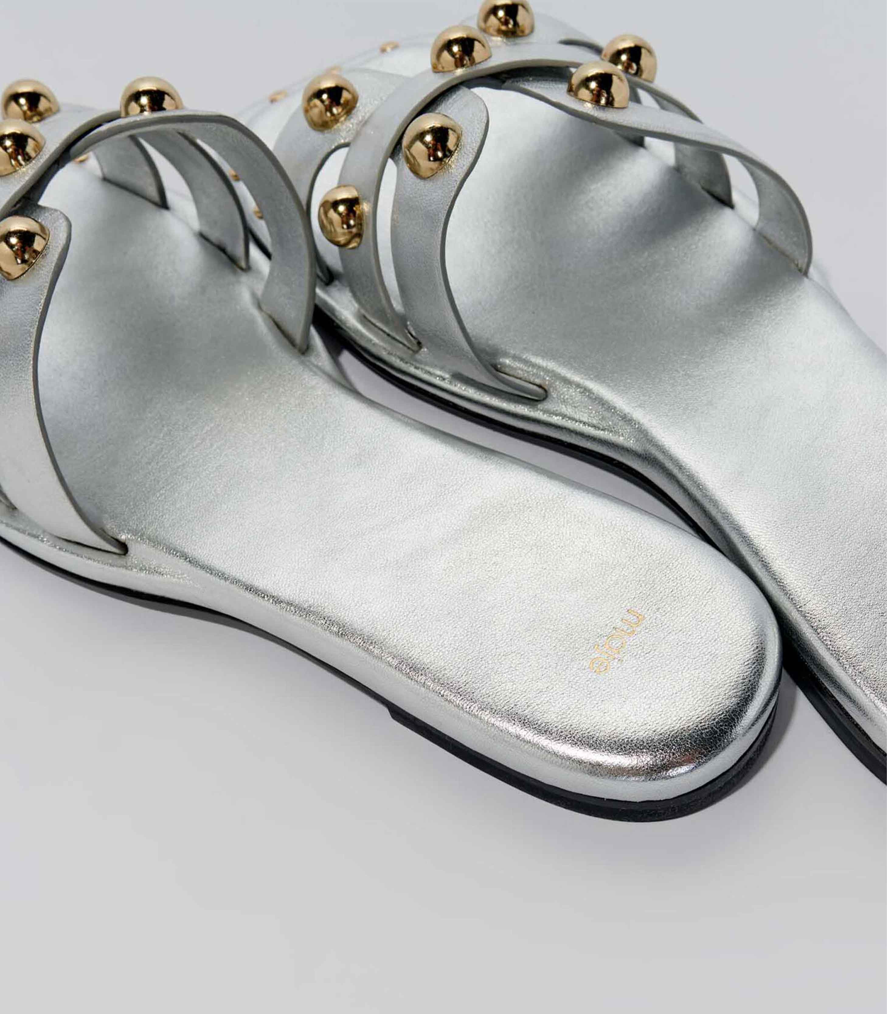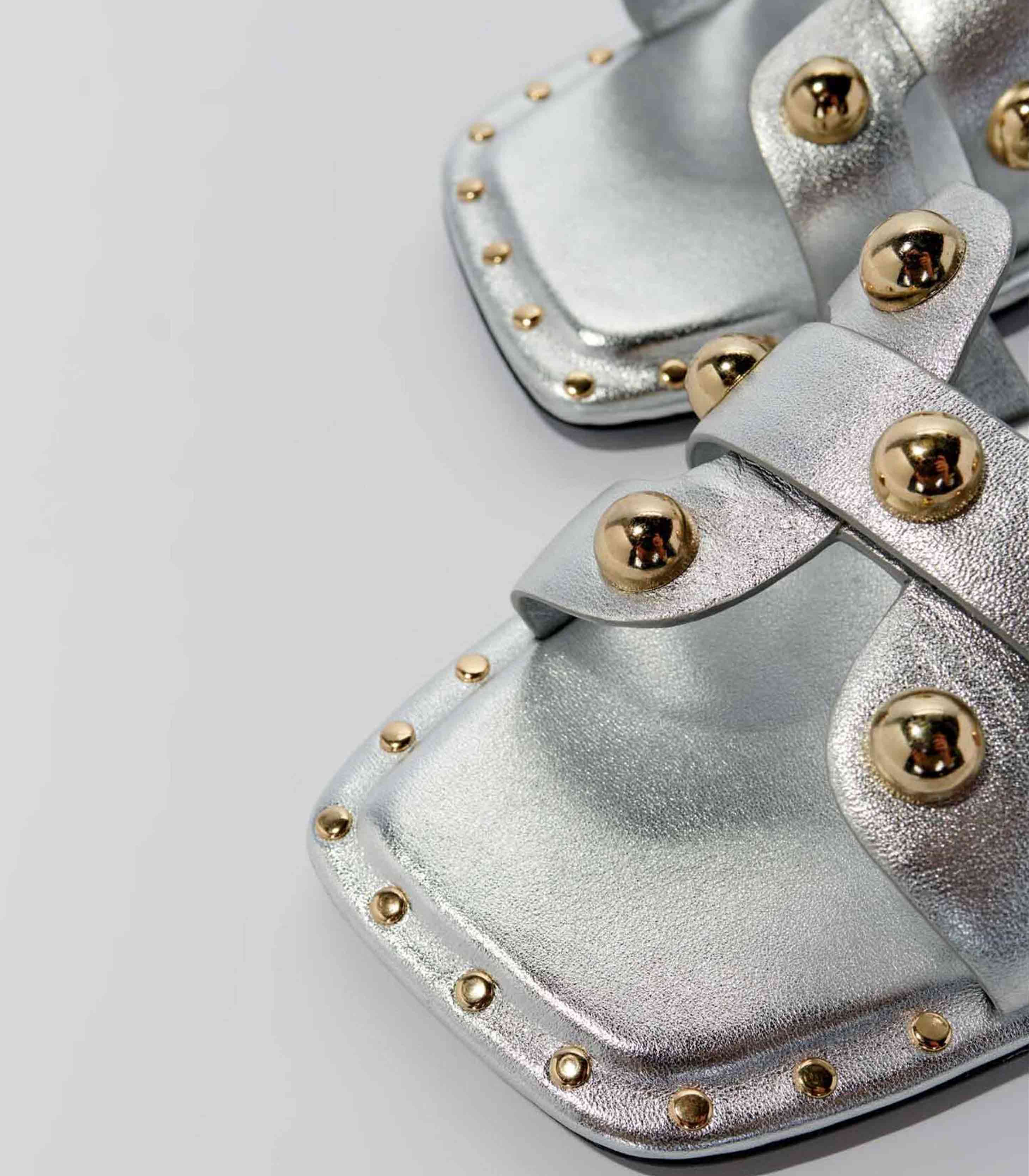 • • Metallic leather mules