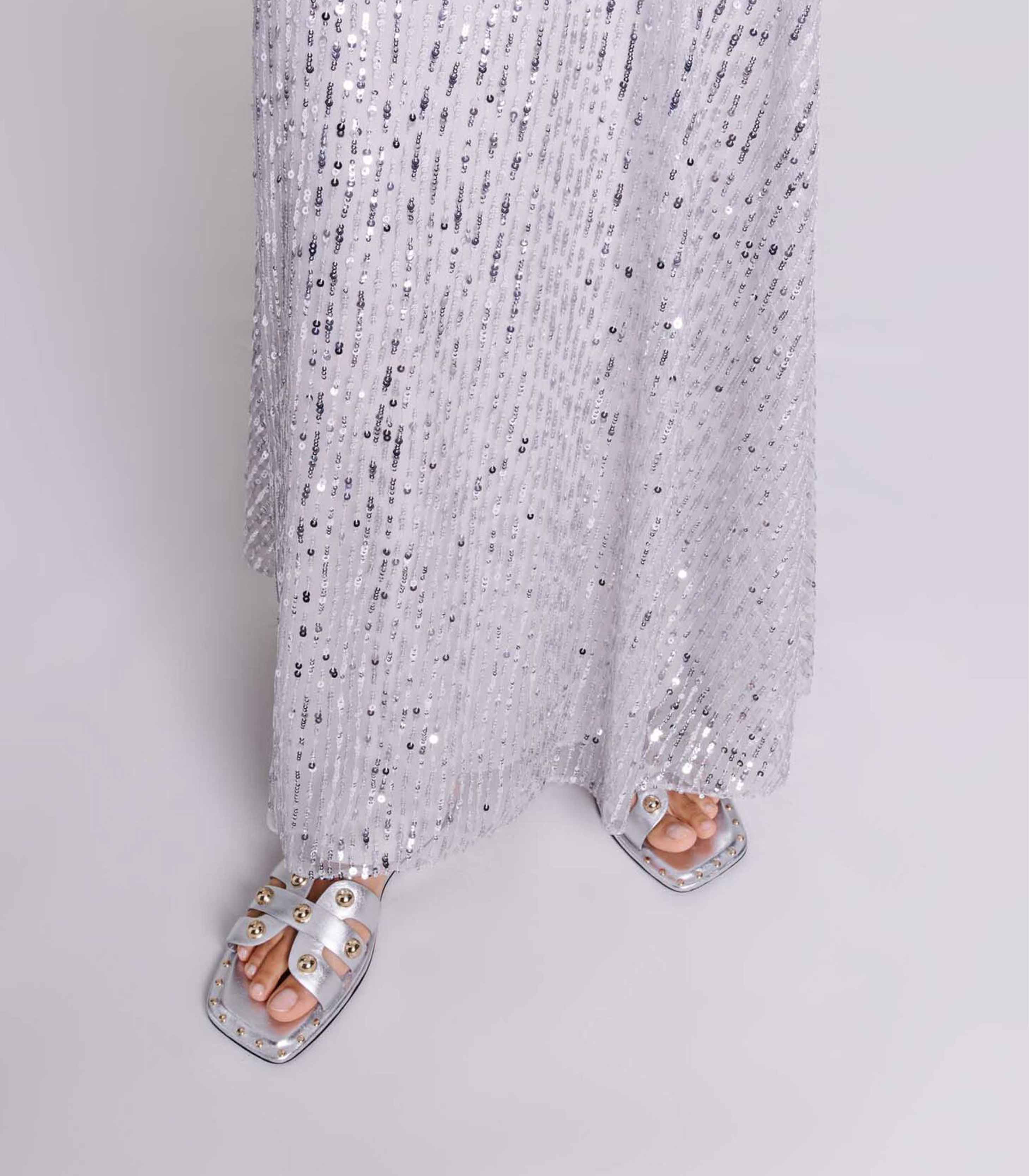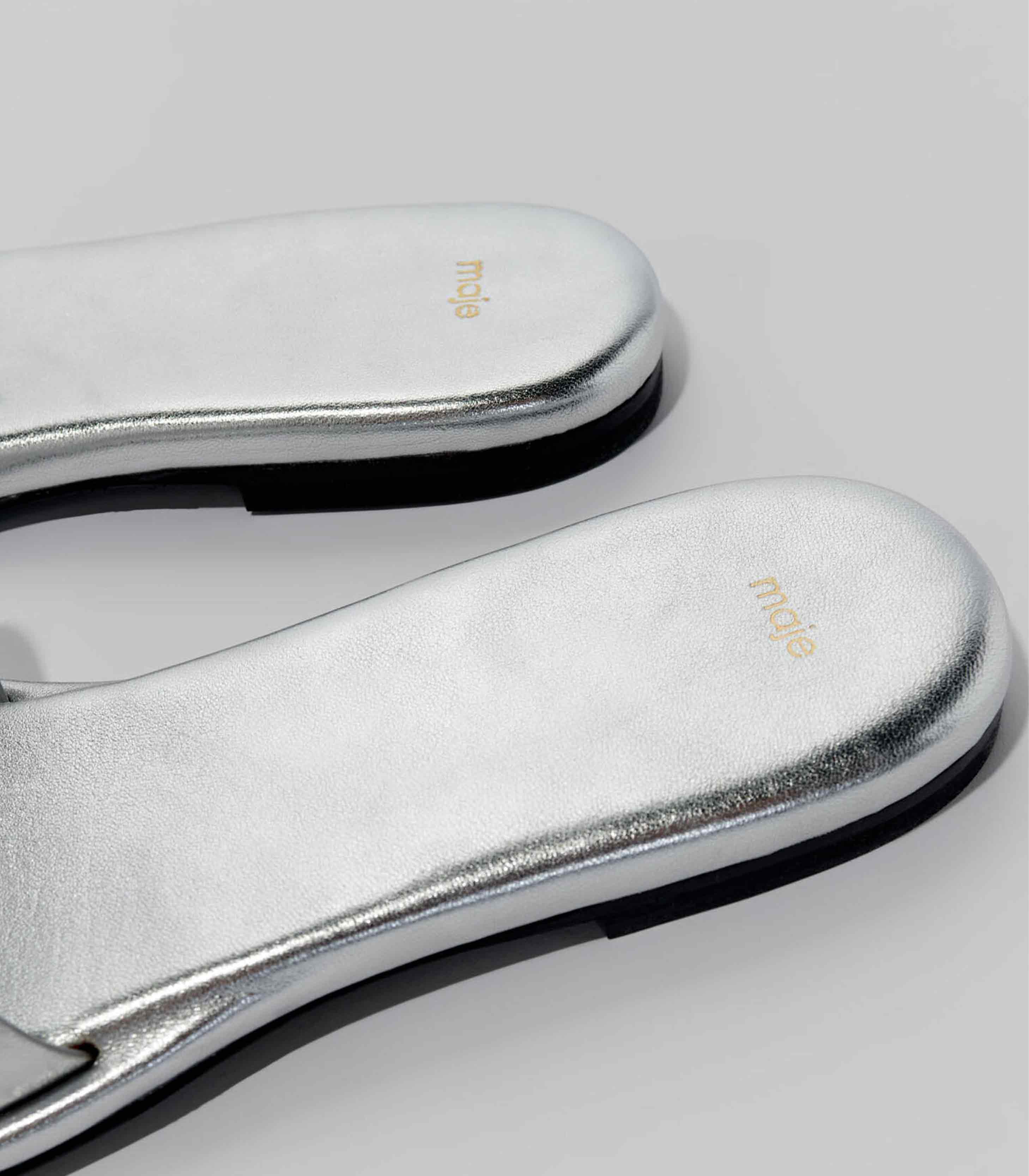 • Made from silver metallic leather, these flat mules combine boldness and elegance to gracefully accessorise your silhouettes.