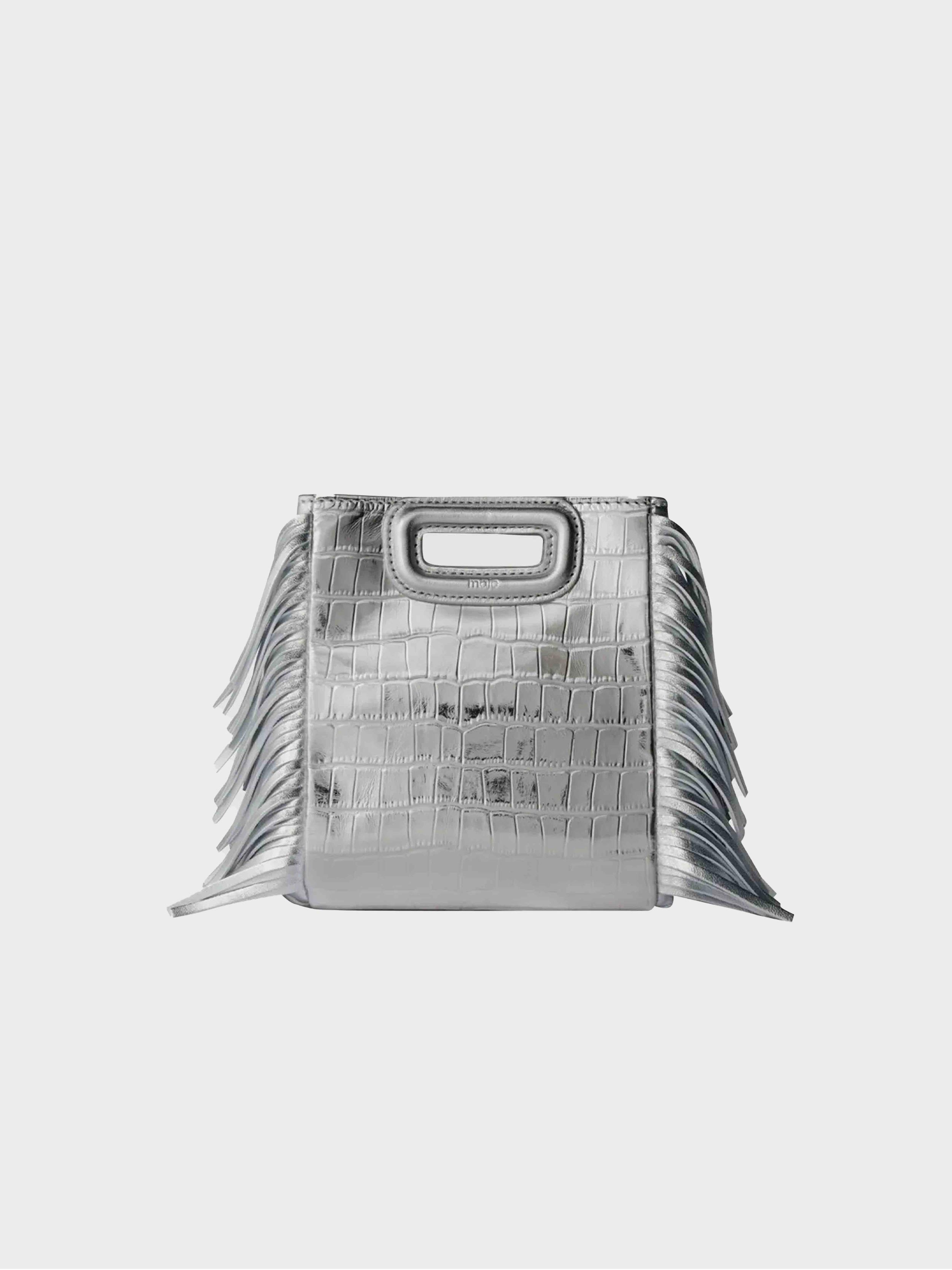 • Maje's iconic M bag comes in mock croc embossed leather in this season's must-have colours. Embellished with fringes on the sides and a covered handle, it features an embossed gold logo and a signature engraved on the lobster clasps. It has a practical magnetic fastening and an adjustable, removable shoulder strap that can be worn in a variety of ways: by hand, on the shoulder or crossbody.