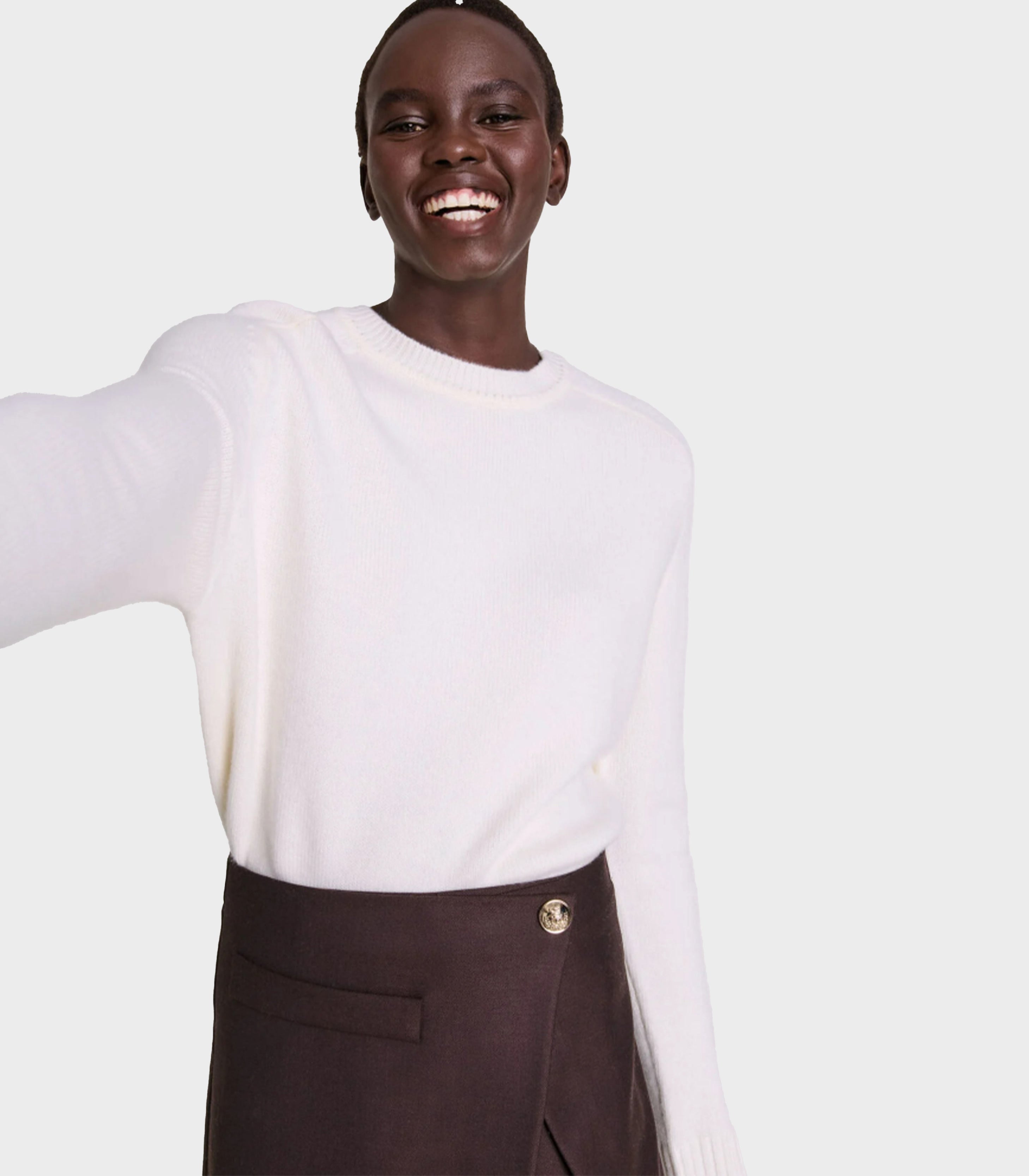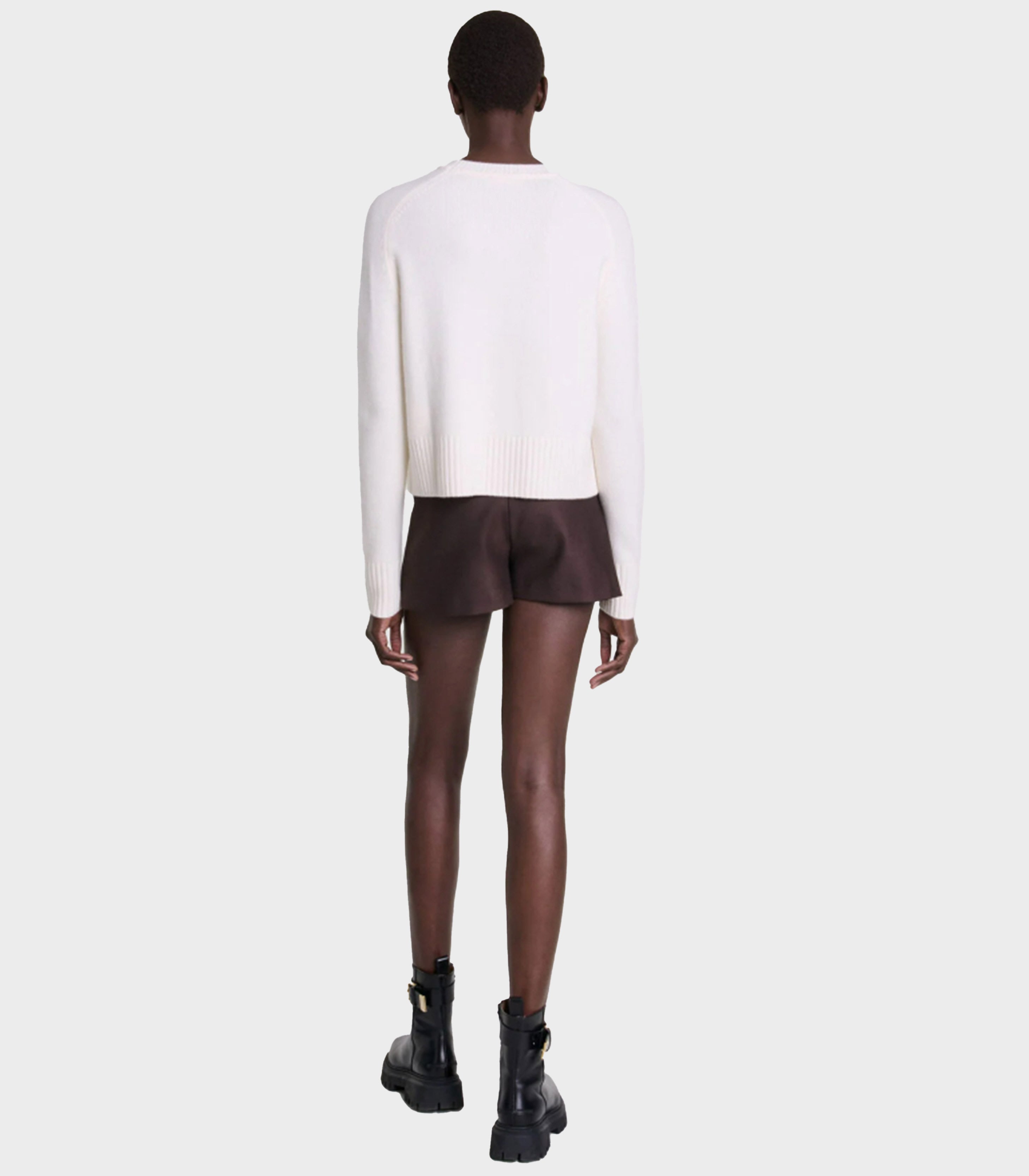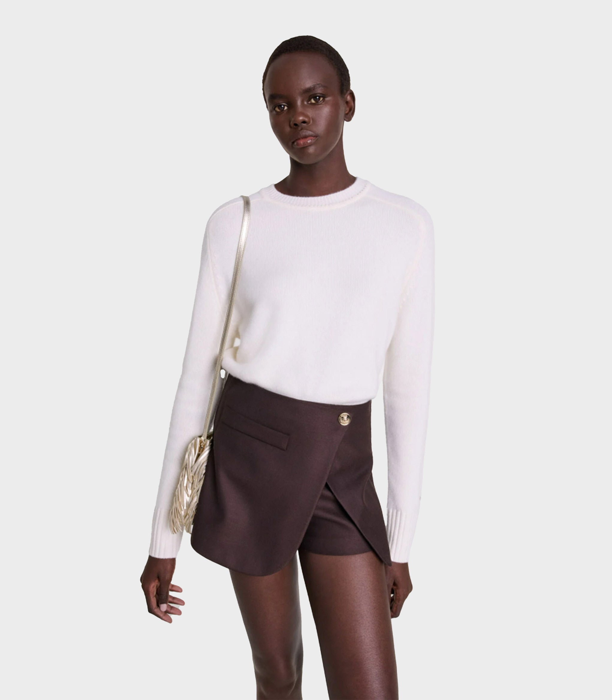 The studio unveils its new collection, the epitome of Parisian chic. Elegance and sophistication unite in a subtle interplay of contrasts and proportions, giving your looks a confident, modern edge. This knitted jumper features a round neck, long sleeves and a ribbed trim for a chic, timeless look. What's the signature detail? A mini Clover tag on the sleeve adds a touch of sophistication to your look. It's a great all-rounder, combining easily with a skirt, bag and ankle boots.