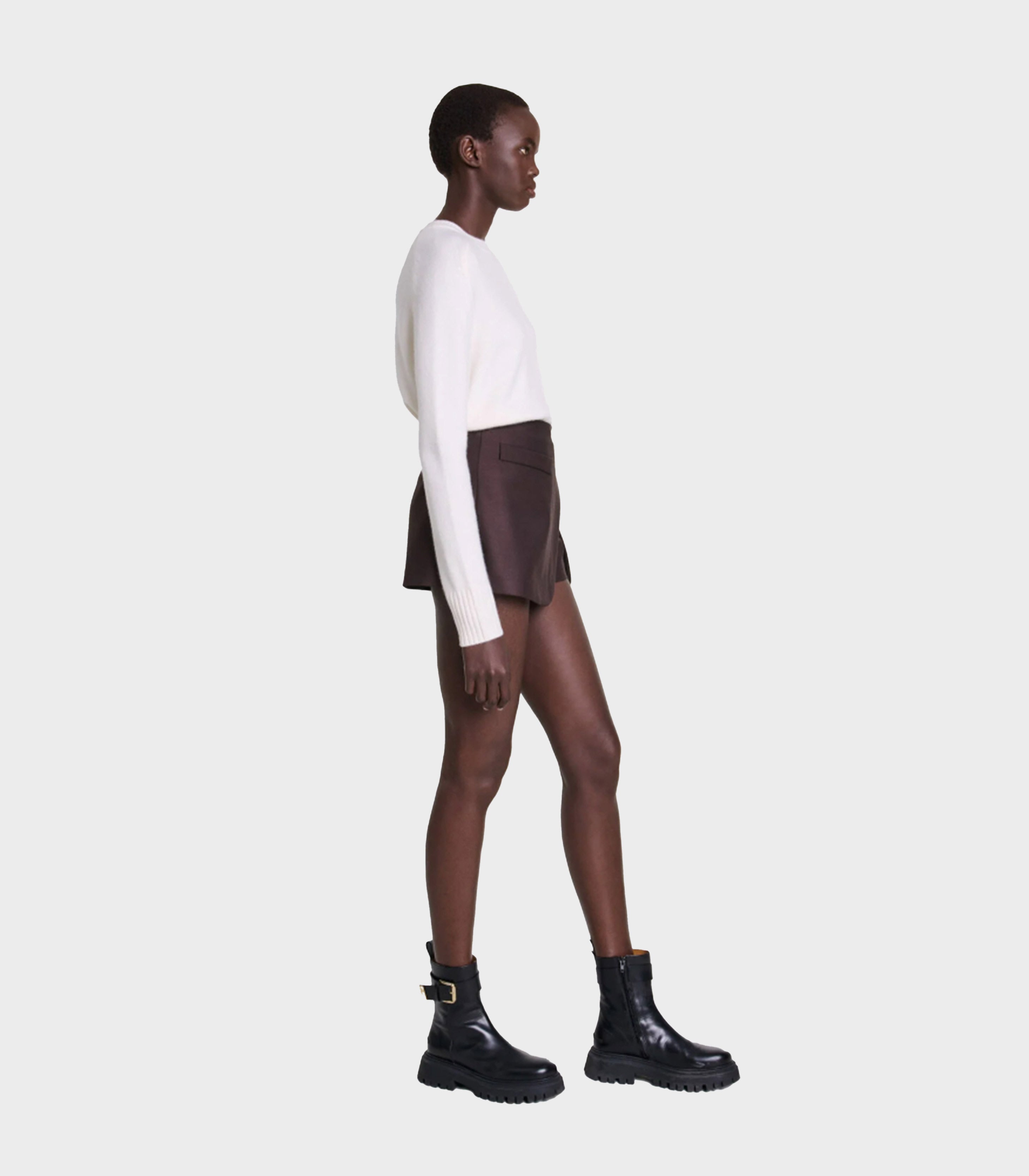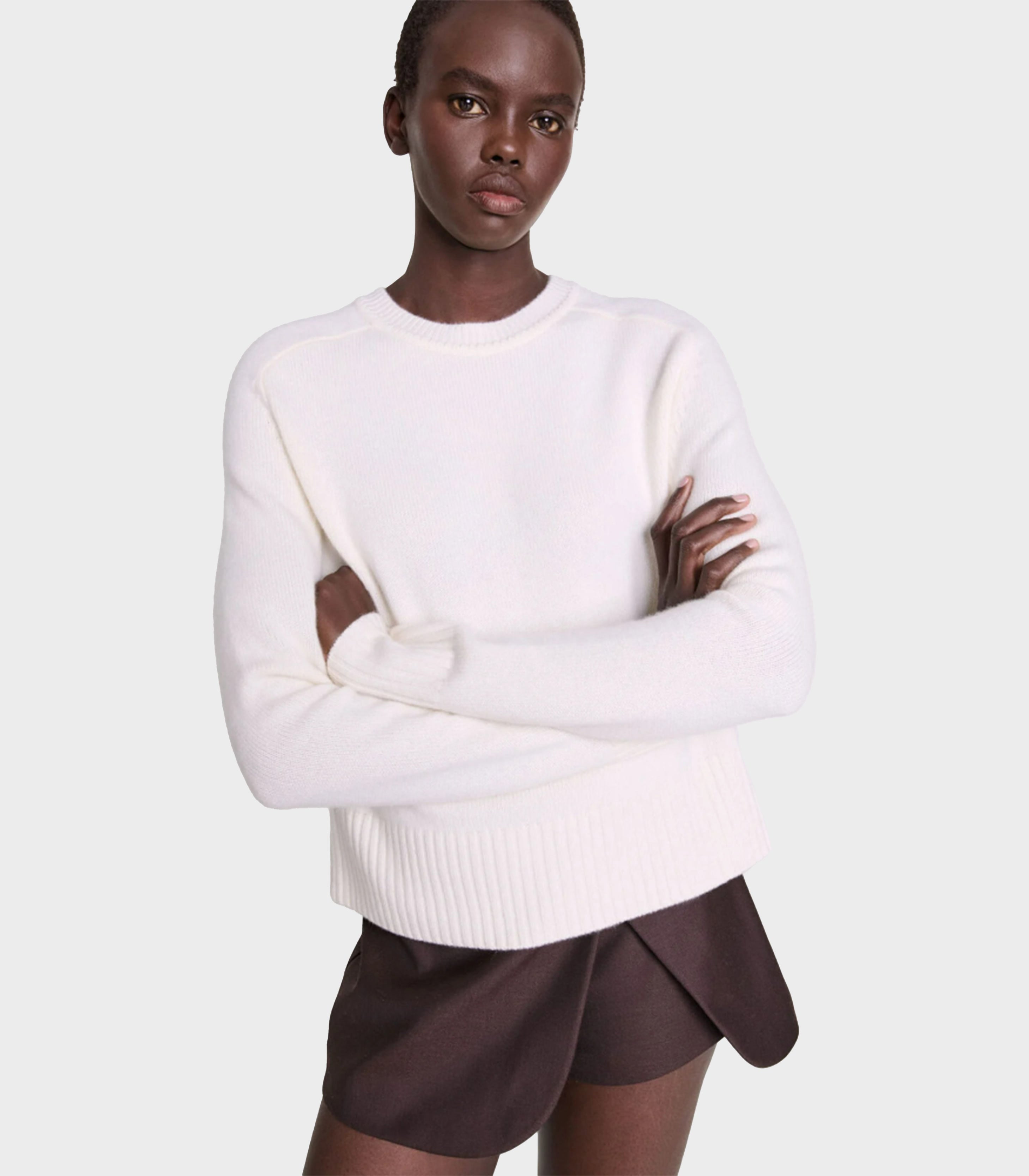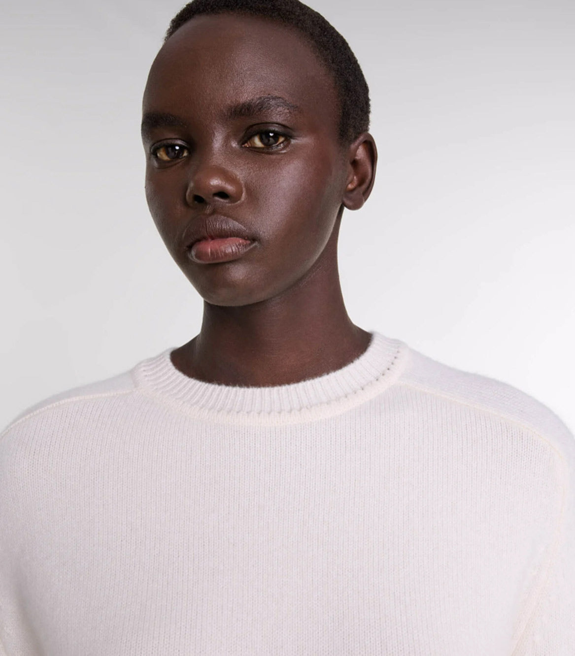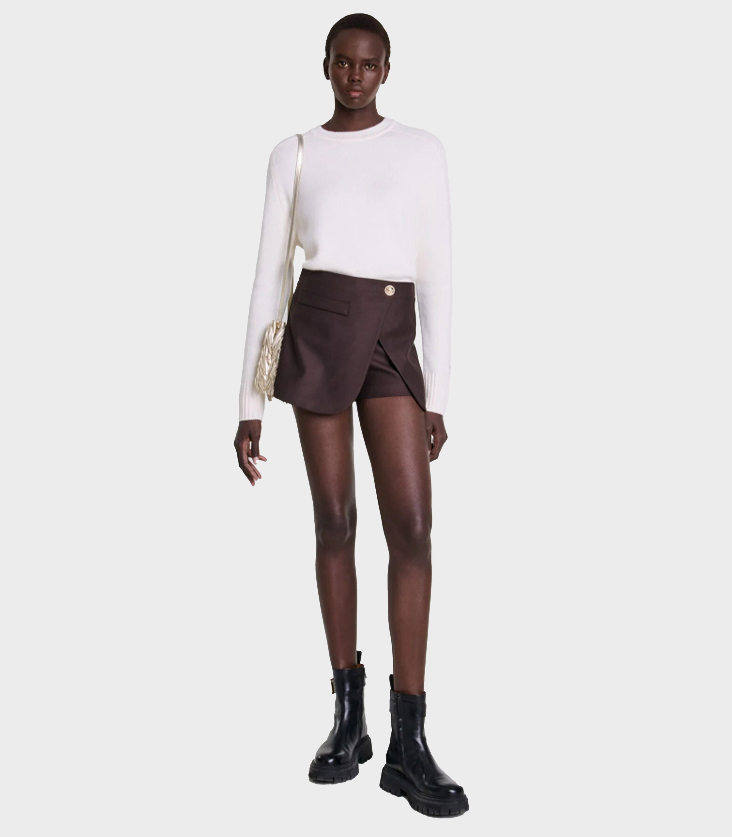 The studio unveils its new collection, the epitome of Parisian chic. Elegance and sophistication unite in a subtle interplay of contrasts and proportions, giving your looks a confident, modern edge. This knitted jumper features a round neck, long sleeves and a ribbed trim for a chic, timeless look. What's the signature detail? A mini Clover tag on the sleeve adds a touch of sophistication to your look. It's a great all-rounder, combining easily with a skirt, bag and ankle boots.