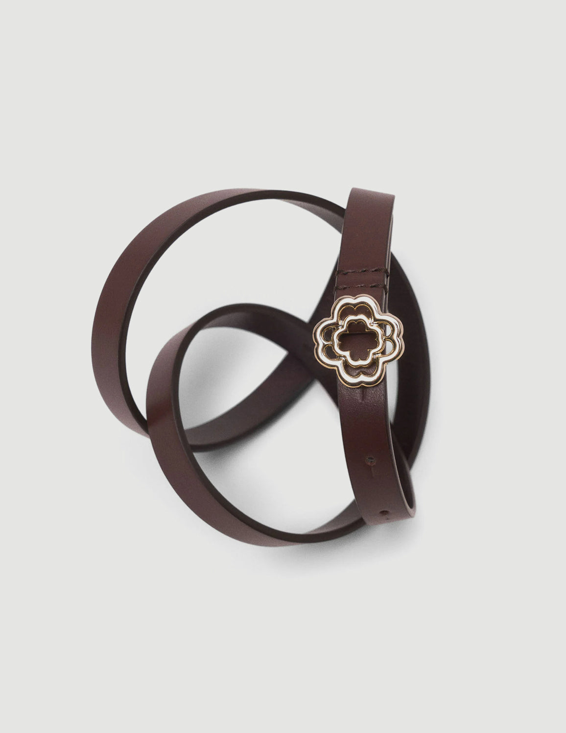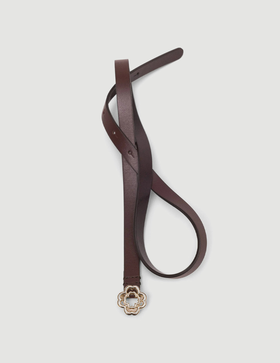 • Add a gold Clover buckle to your look with this plain leather belt. This slim, adjustable belt emphasises your waist in style and can be worn on any occasion.
