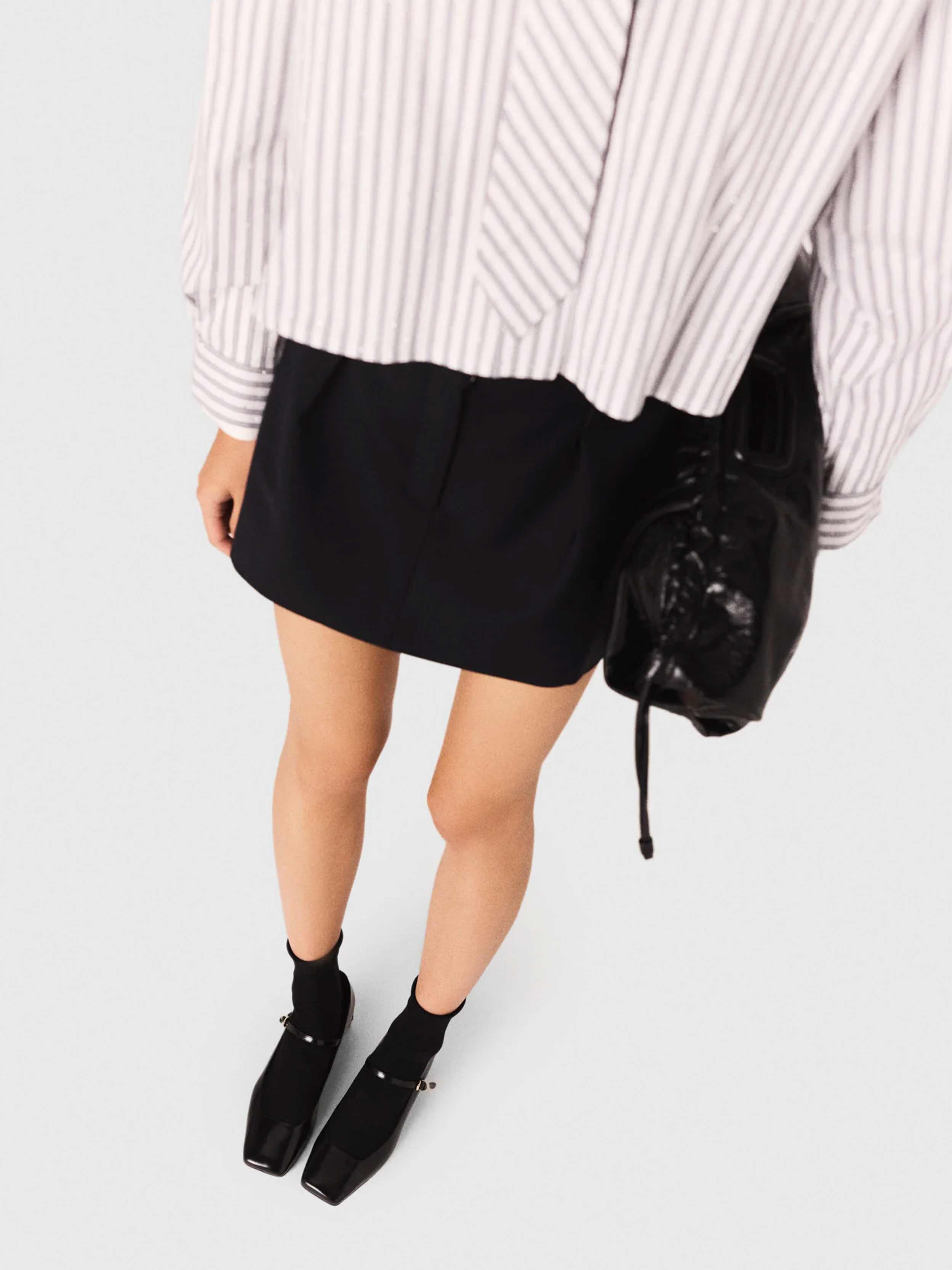 • This short shirt combines classic stripes and rhinestone details for a bright twist. With its short cut that redefines the silhouette, its two-tone collar and buttoned cuffs, it's a wardrobe essential, easy to mix and match and accessorise. Its standout feature is the removable tie, offering a multitude of possibilities.