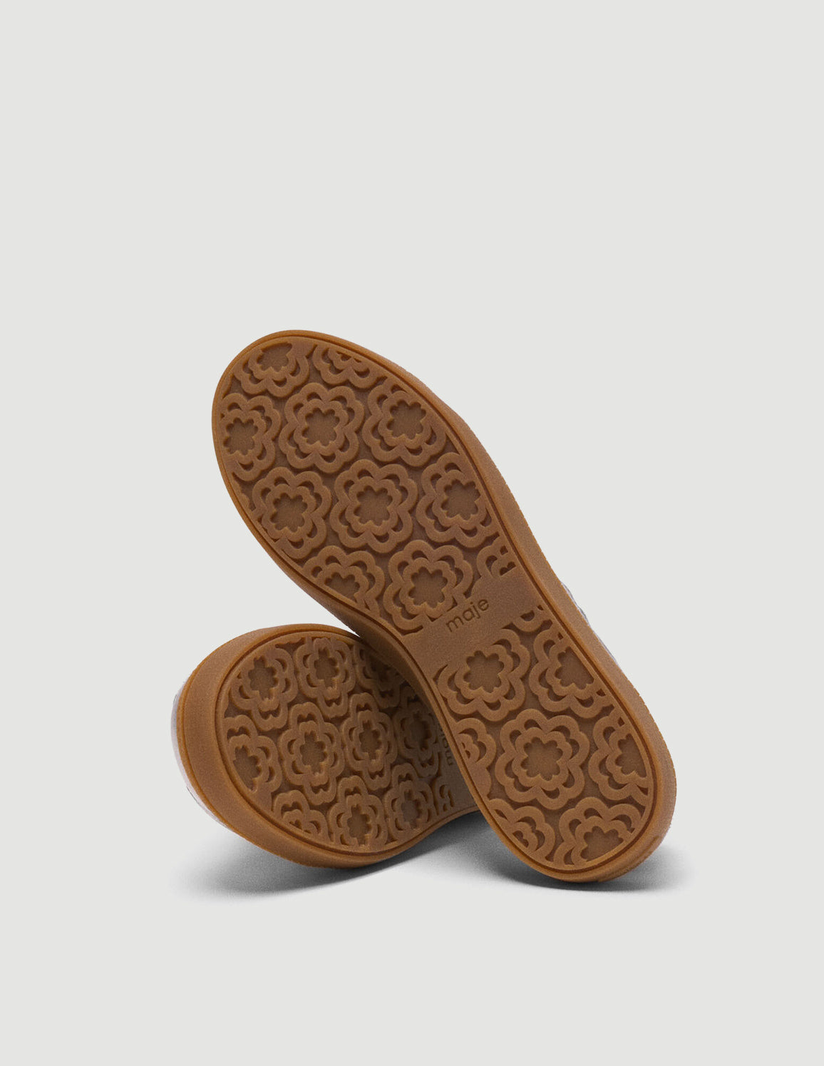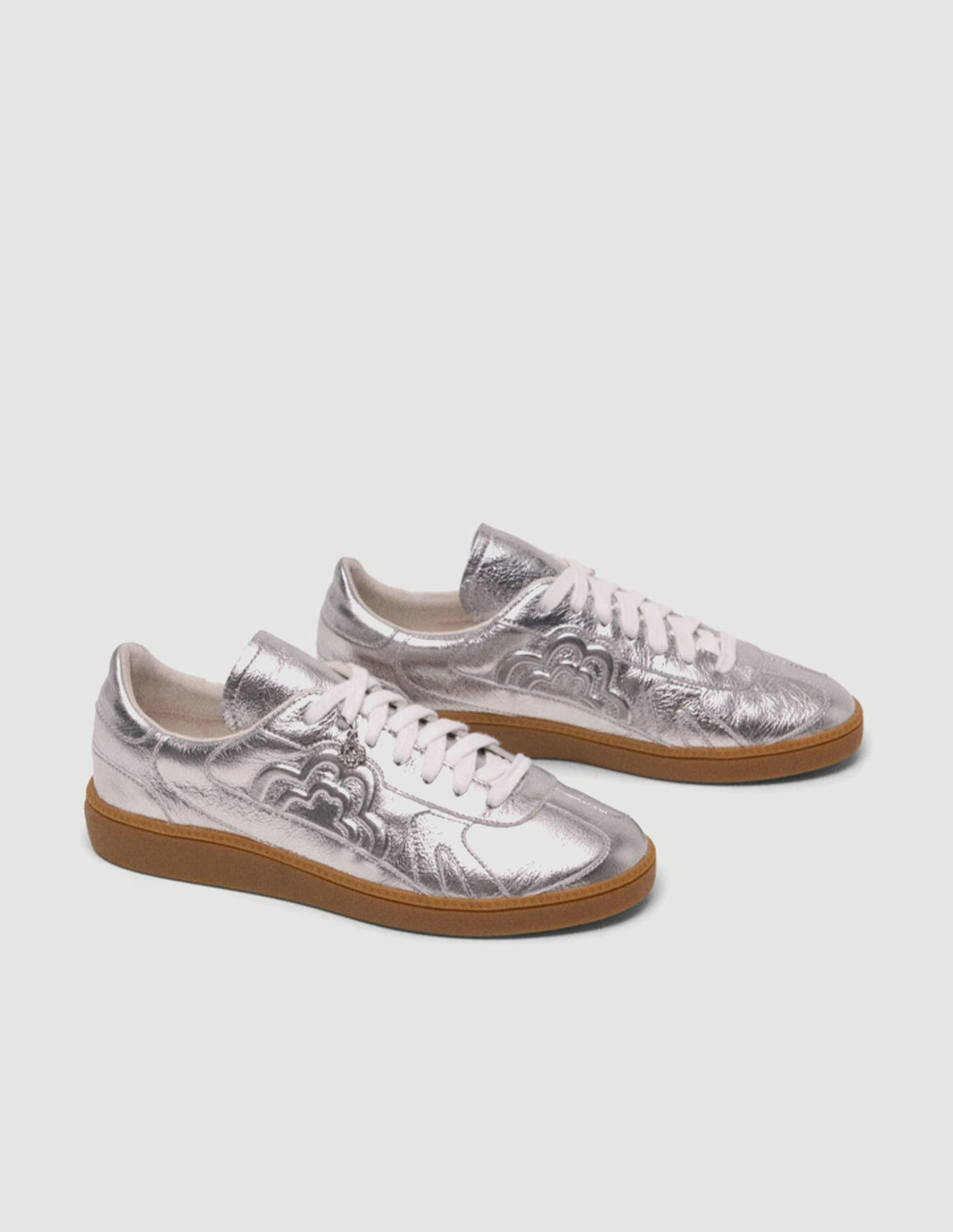 • These flat sneakers in metallic foil leather feature a slightly cracked finish for a textured touch. Equipped with laces, the logo is embossed in relief using a high-frequency technique, subtly highlighting the piece.