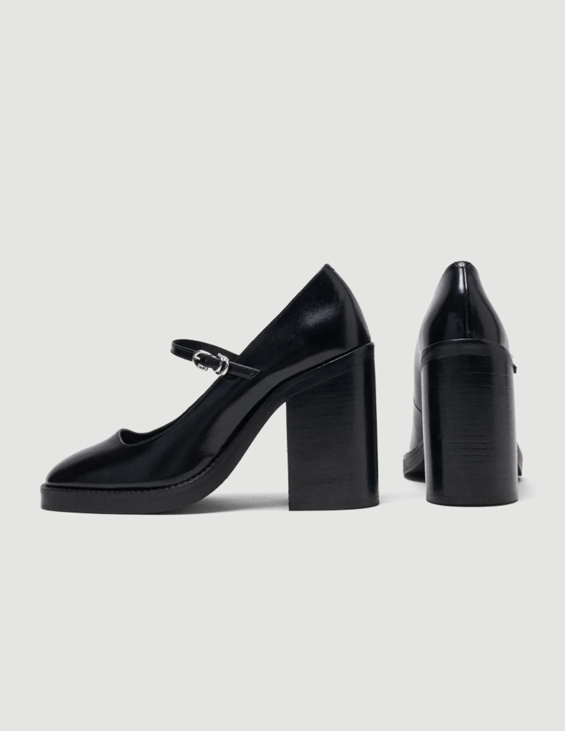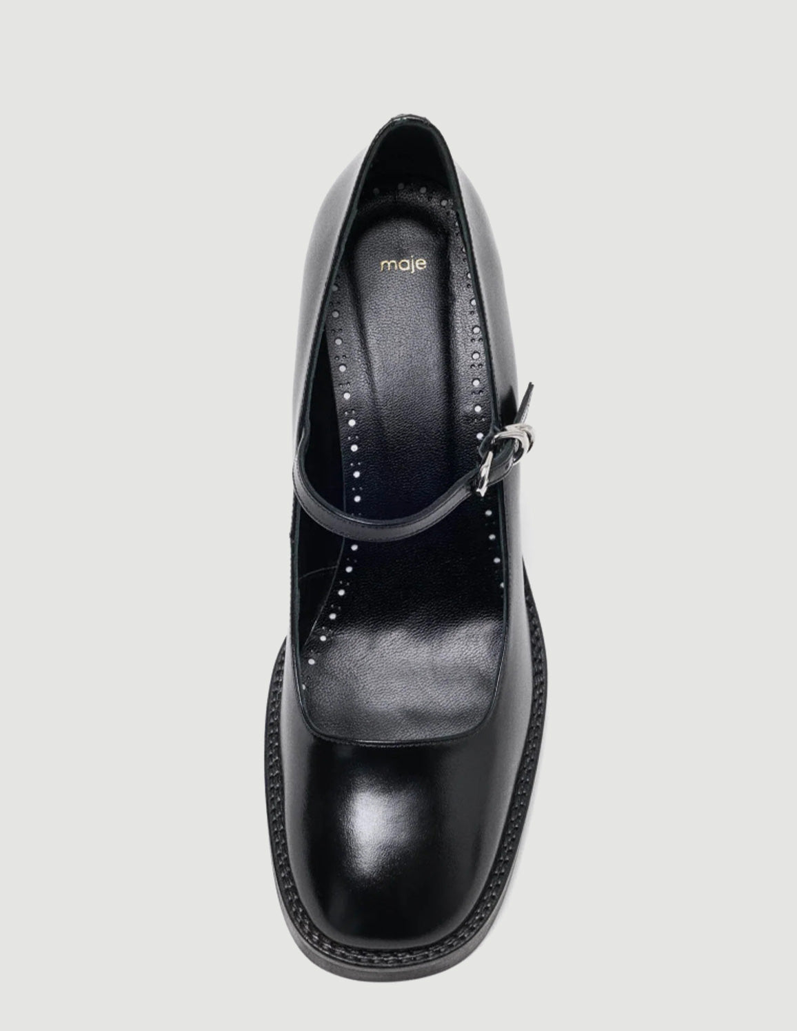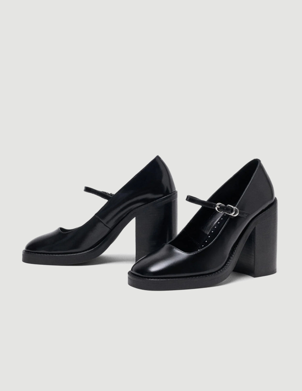 • These Mary Janes are reimagined by the Maje studio with a chunky heel, offering a look that is both retro and modern. Their rounded toe, set on a slight platform, ensures comfort and support, and an adjustable strap highlights the foot. Pair with a floaty dress, or mix them with jeans.