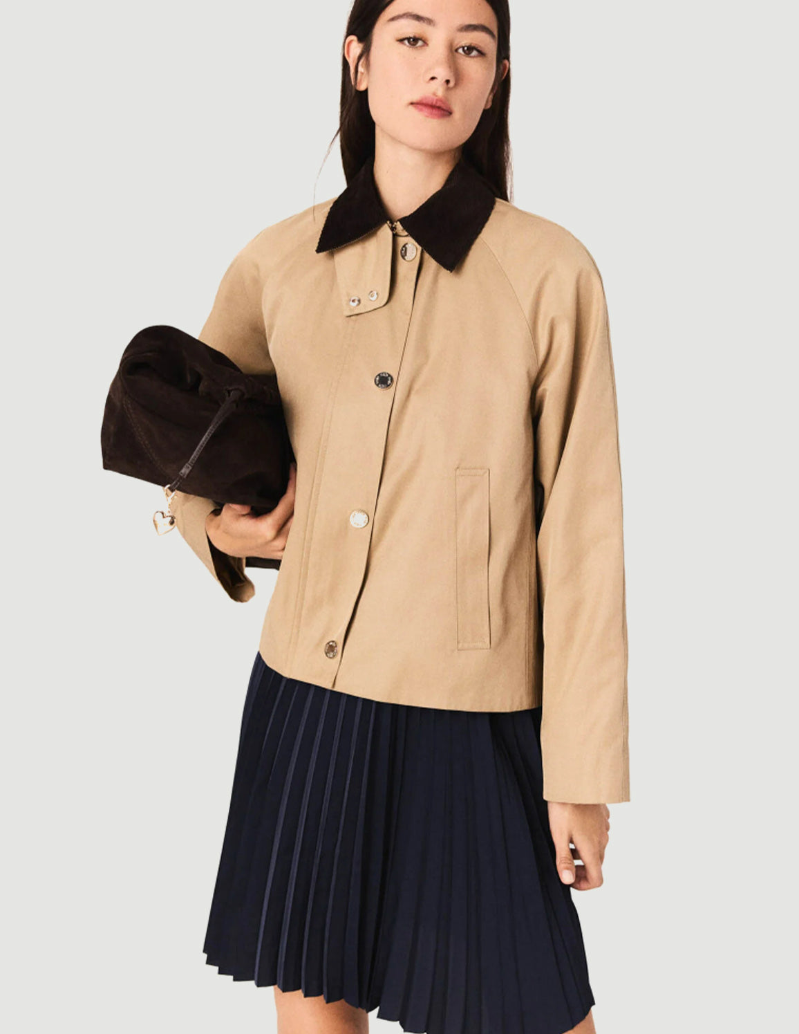 • Perfect for warming up a preppy look or adding an outdoor twist to a tailored outfit, complete the look with a pleated skirt, loafers with socks and a signature bag.