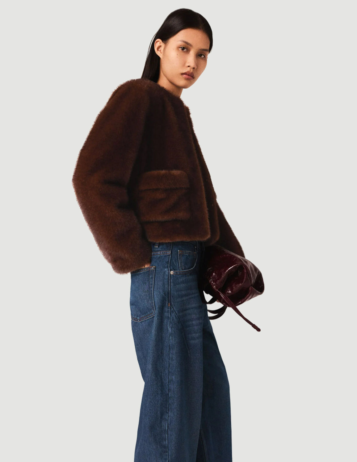 • Short faux fur coat