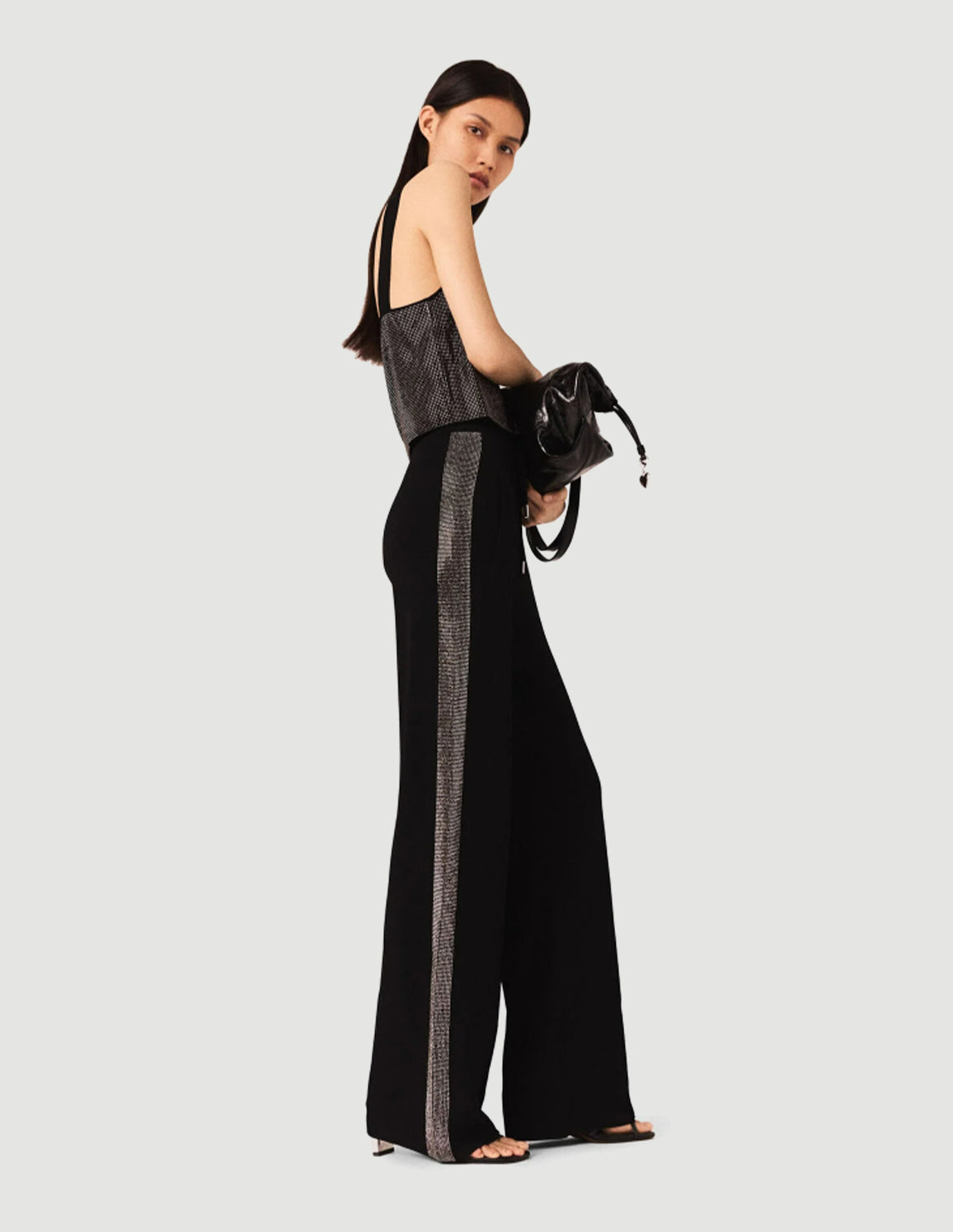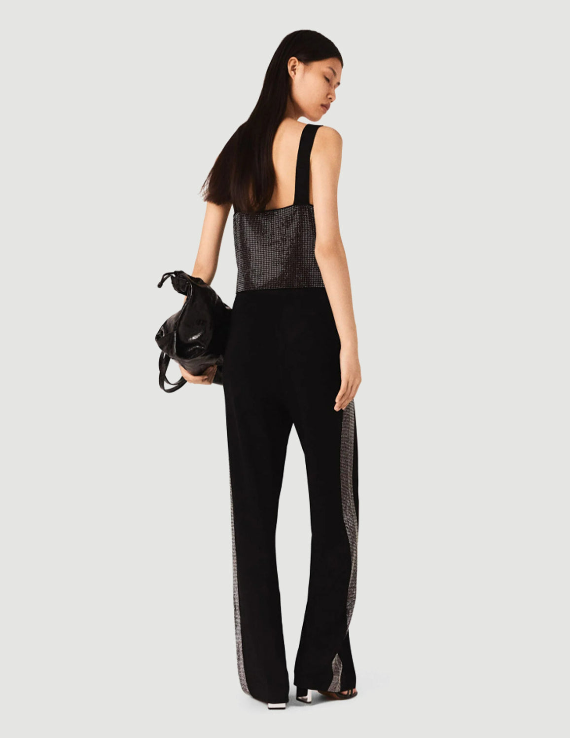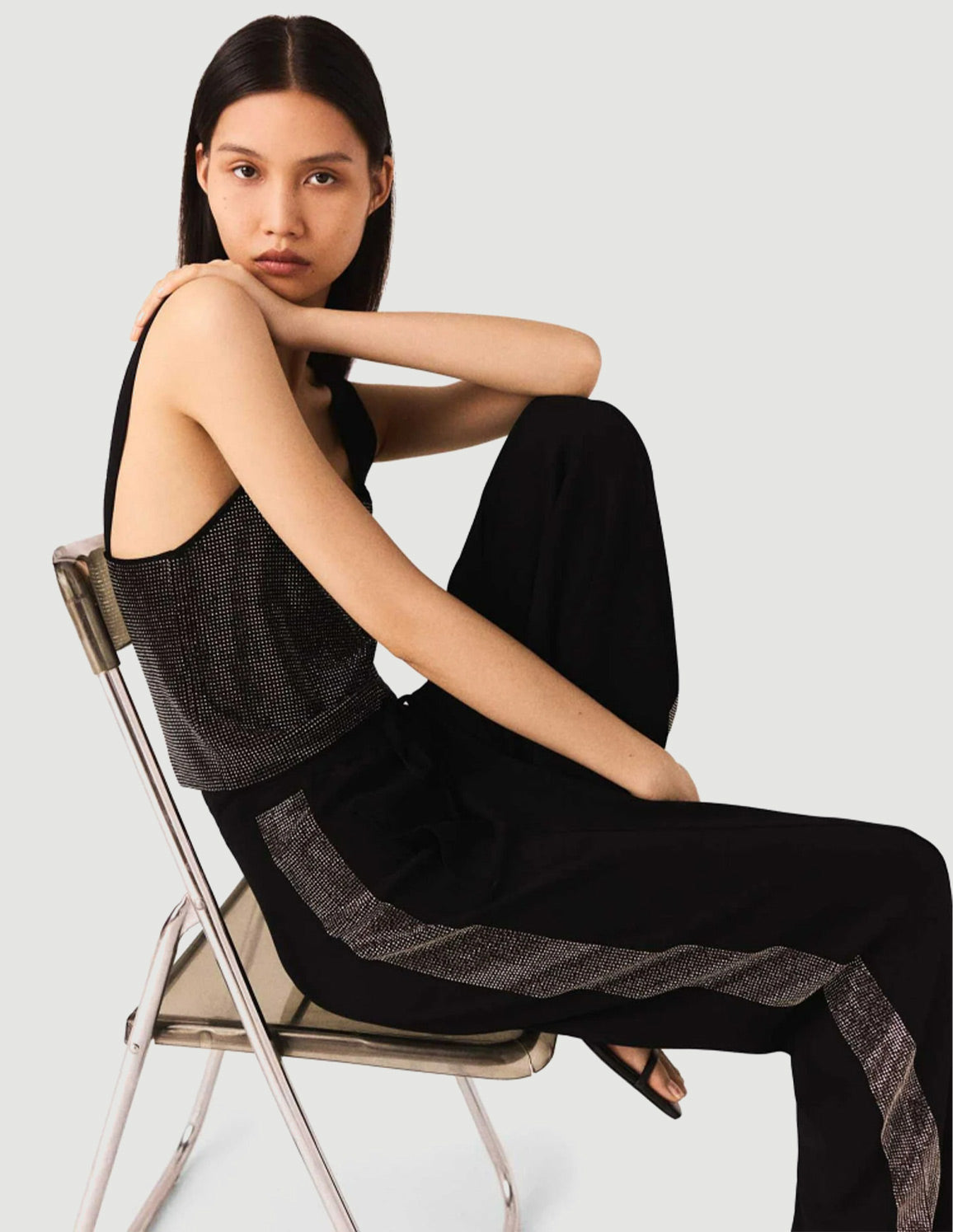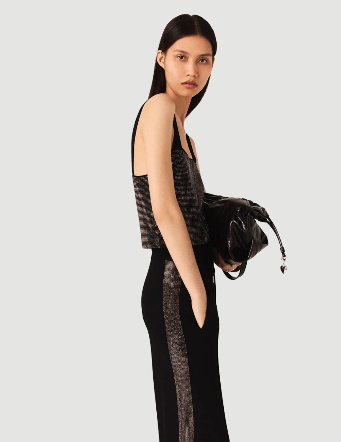 • Sporty style gets a touch of sparkle. This rhinestone knit top combines a loose fit with subtle shine, in a distinctly lounge style. Wear with the matching trousers for a cool, sparkling look.