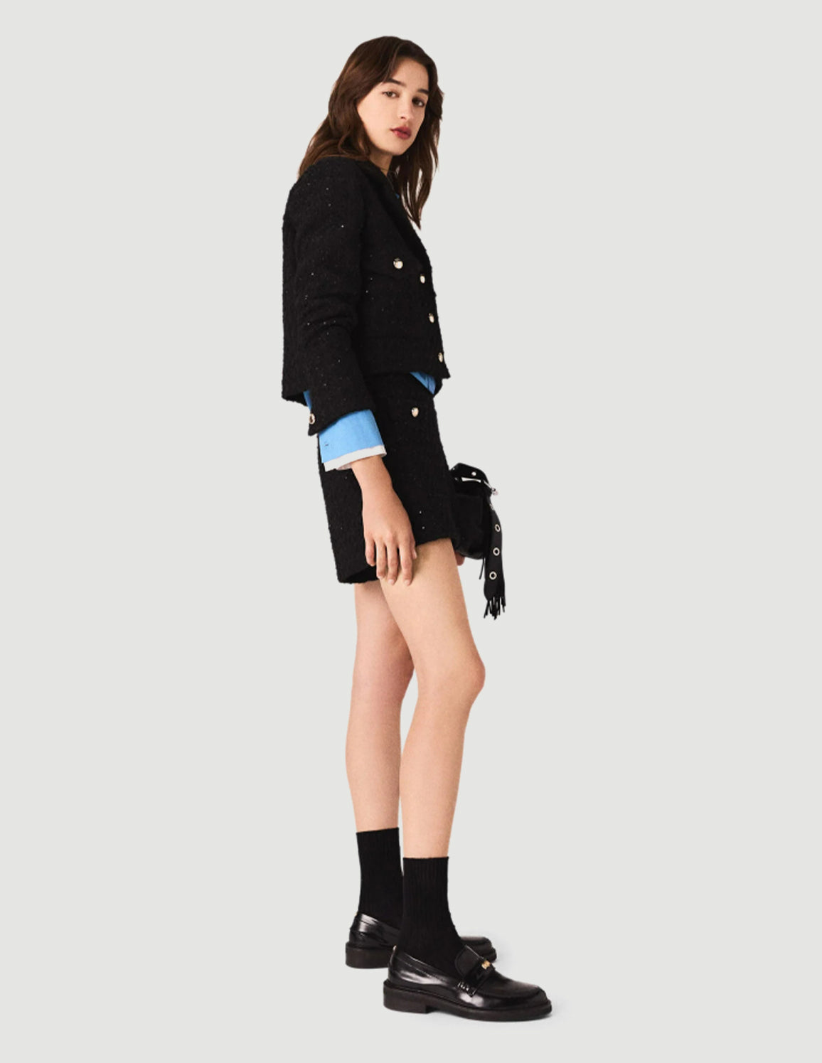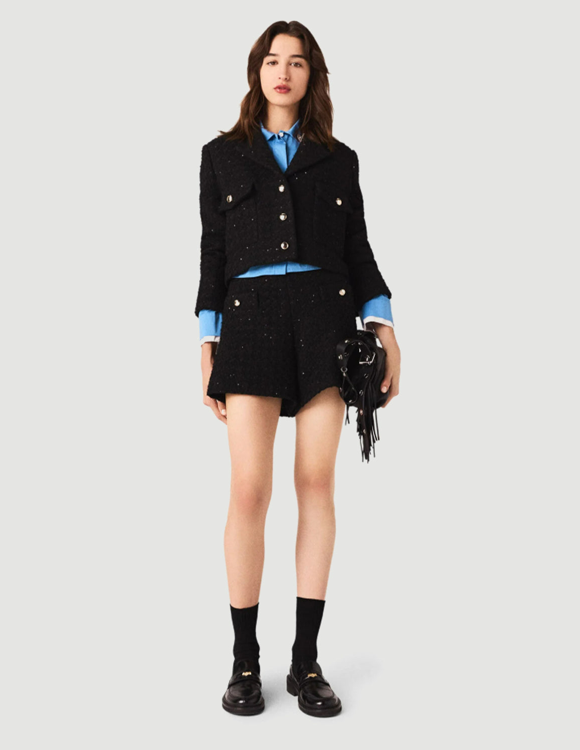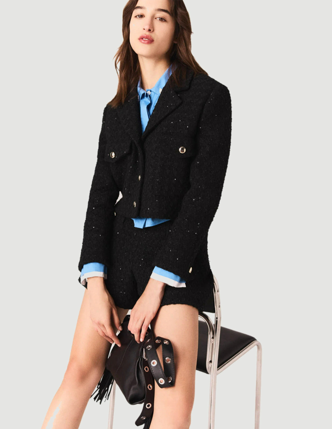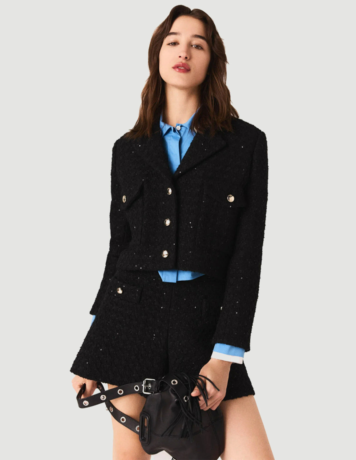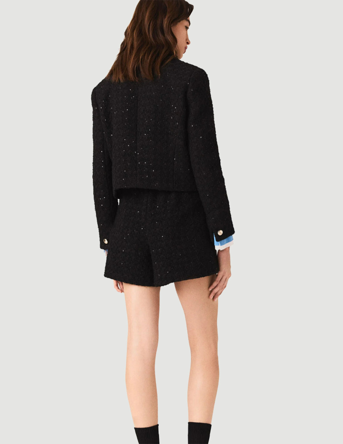 • Short tweed jacket embellished with sequins