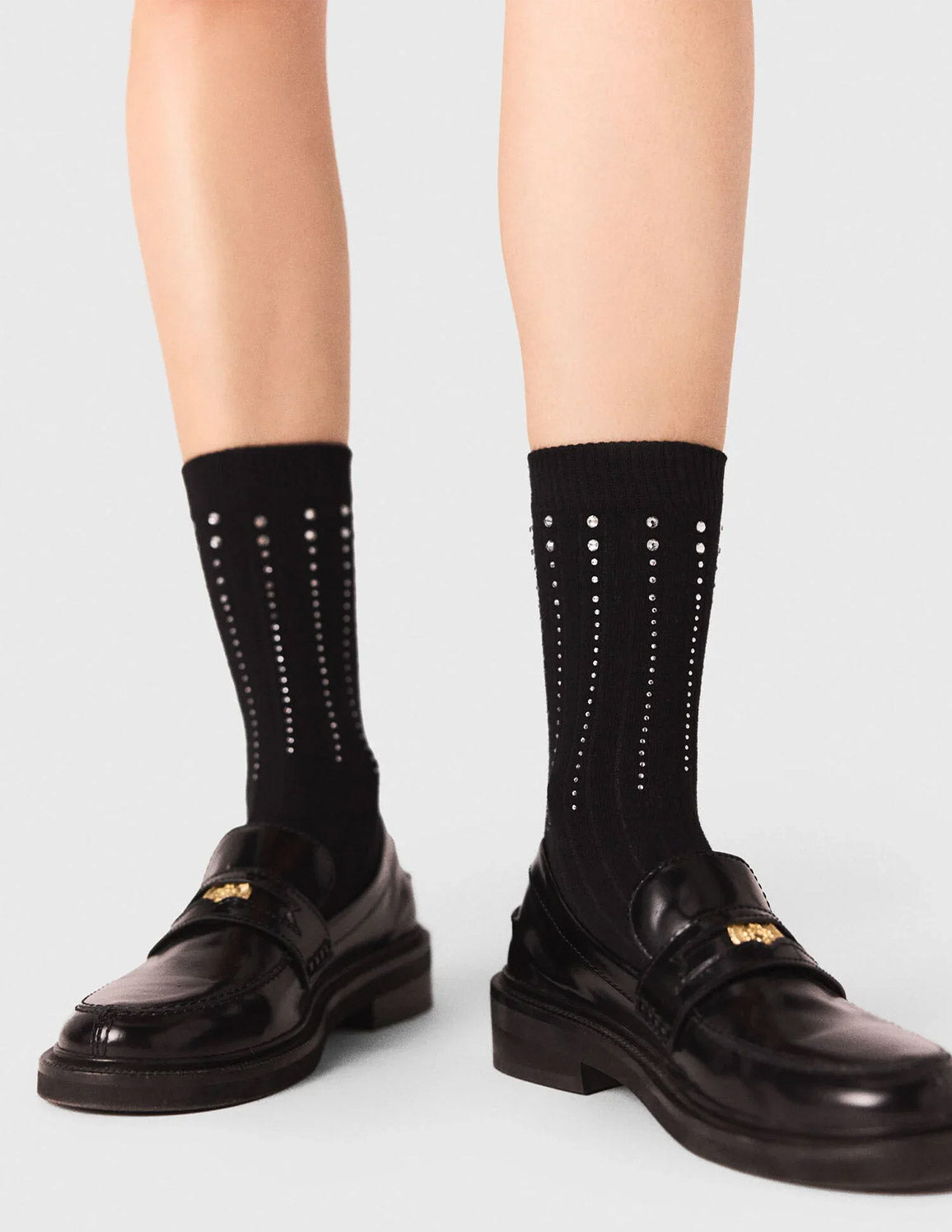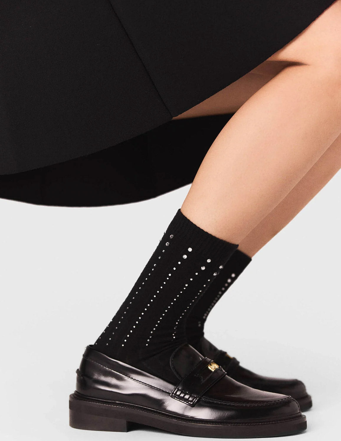 • Adorned with rhinestones arranged in lines, they add sparkle to your every move.
