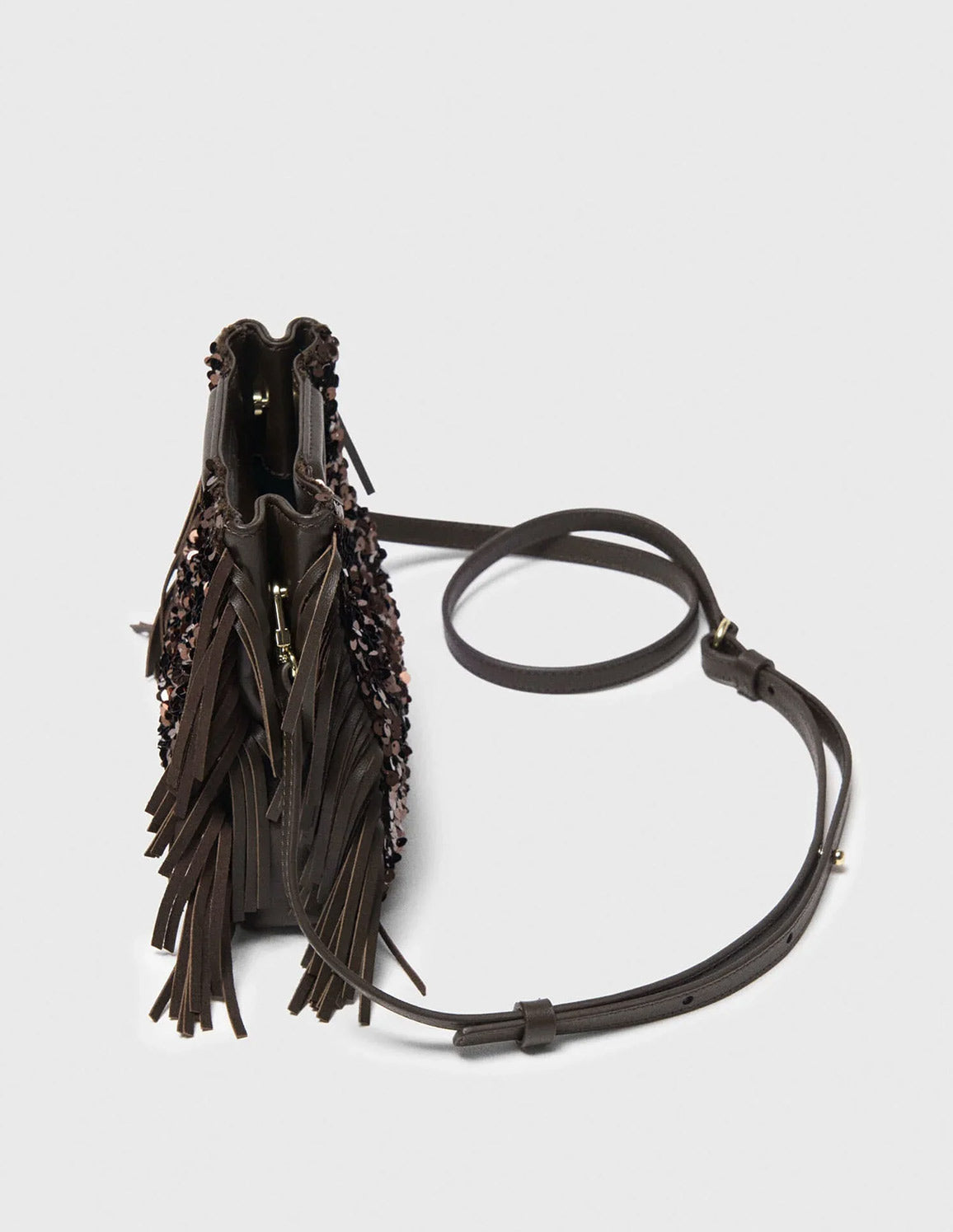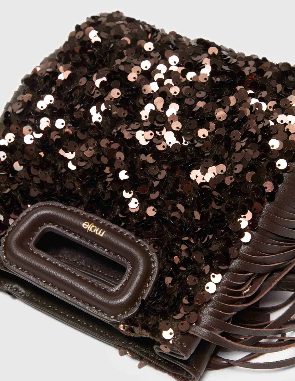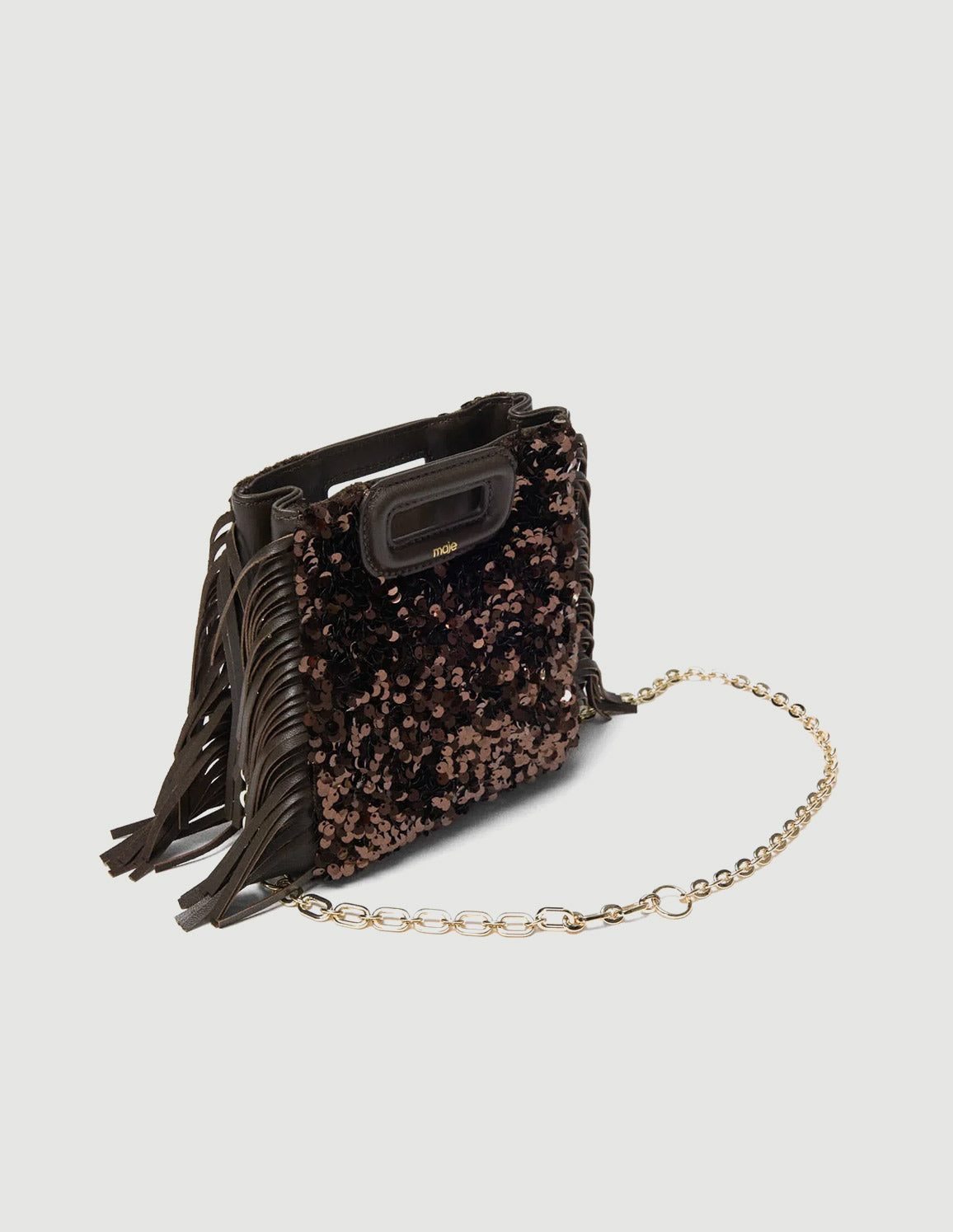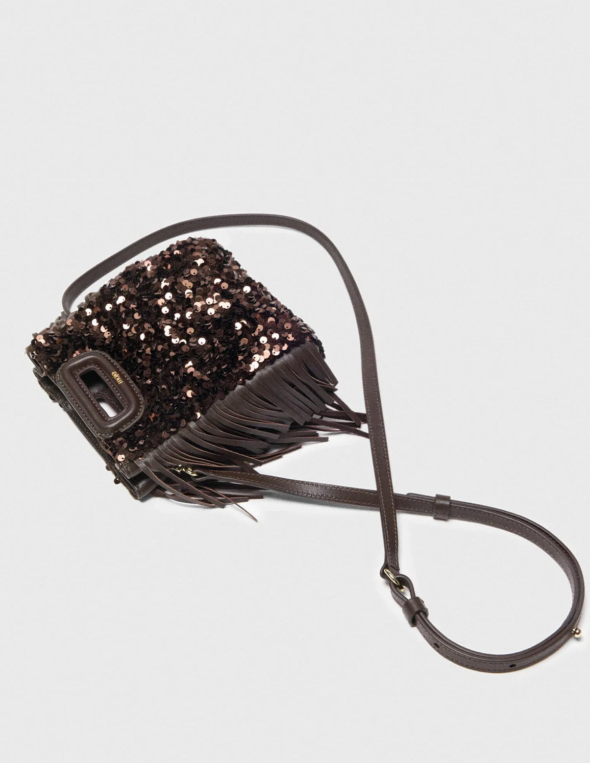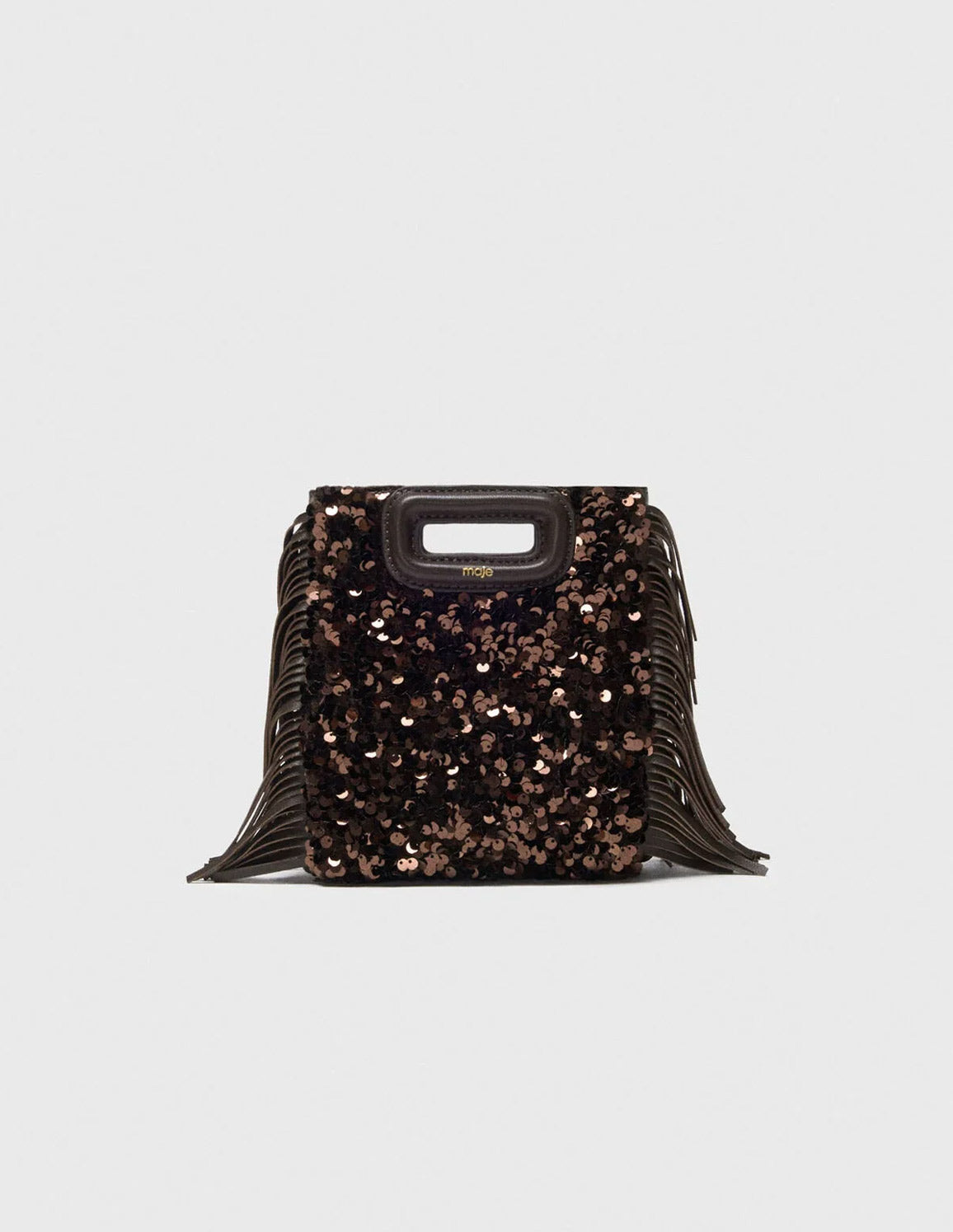 • Maje's iconic M bag comes in a sequin version that's both chic and practical. Embellished with fringes on the sides and a sheathed handle, it features an embossed logo and a signature engraved on the lobster clasps. It has a practical magnetic fastening and an adjustable, removable leather strap that allows it to be carried in a variety of ways: by hand, on the shoulder or crossbody.