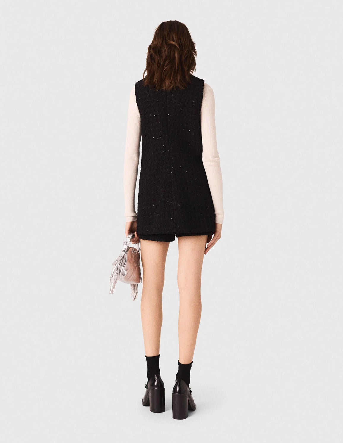 • Sleeveless tweed playsuit