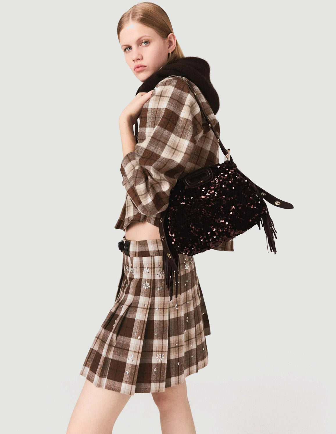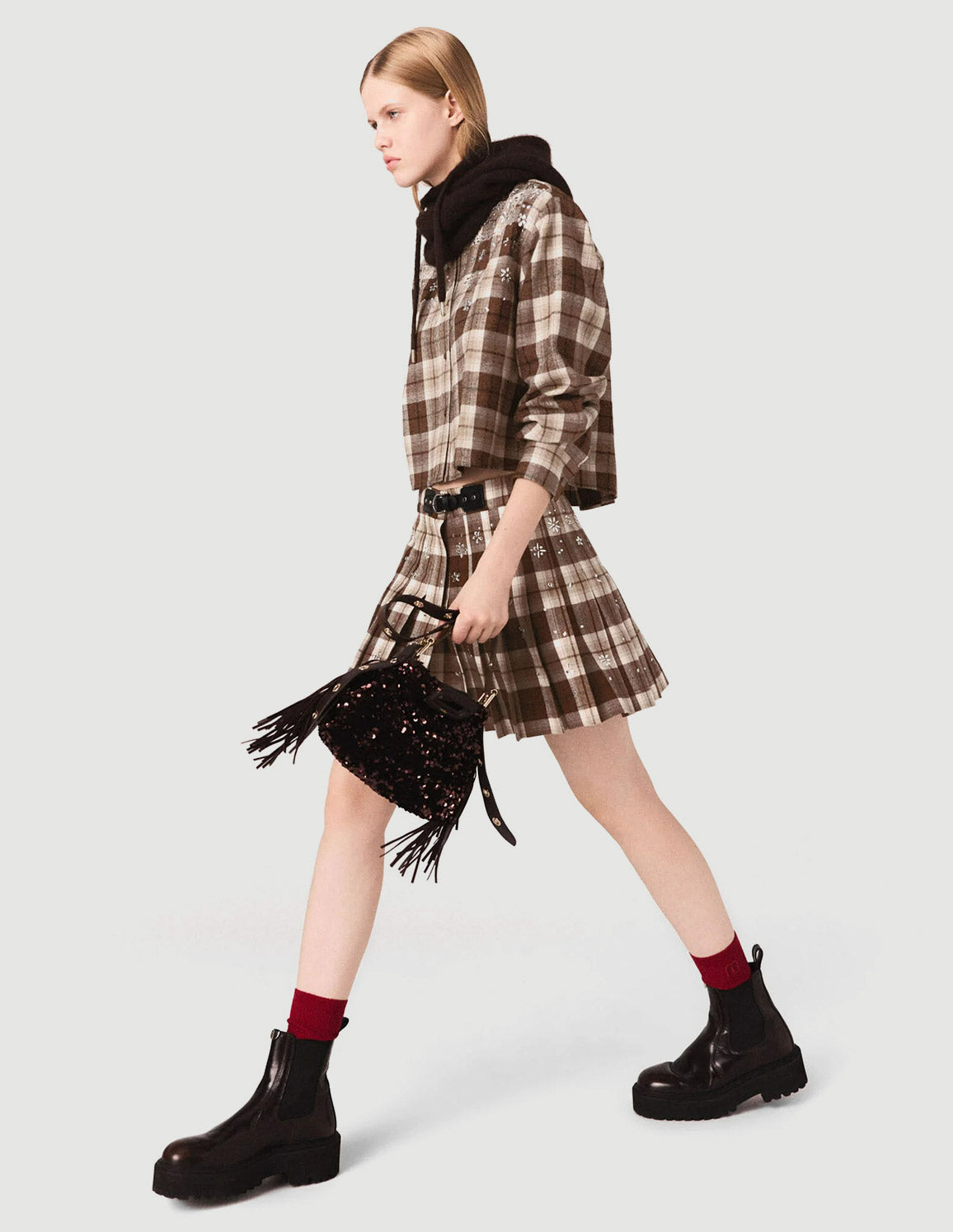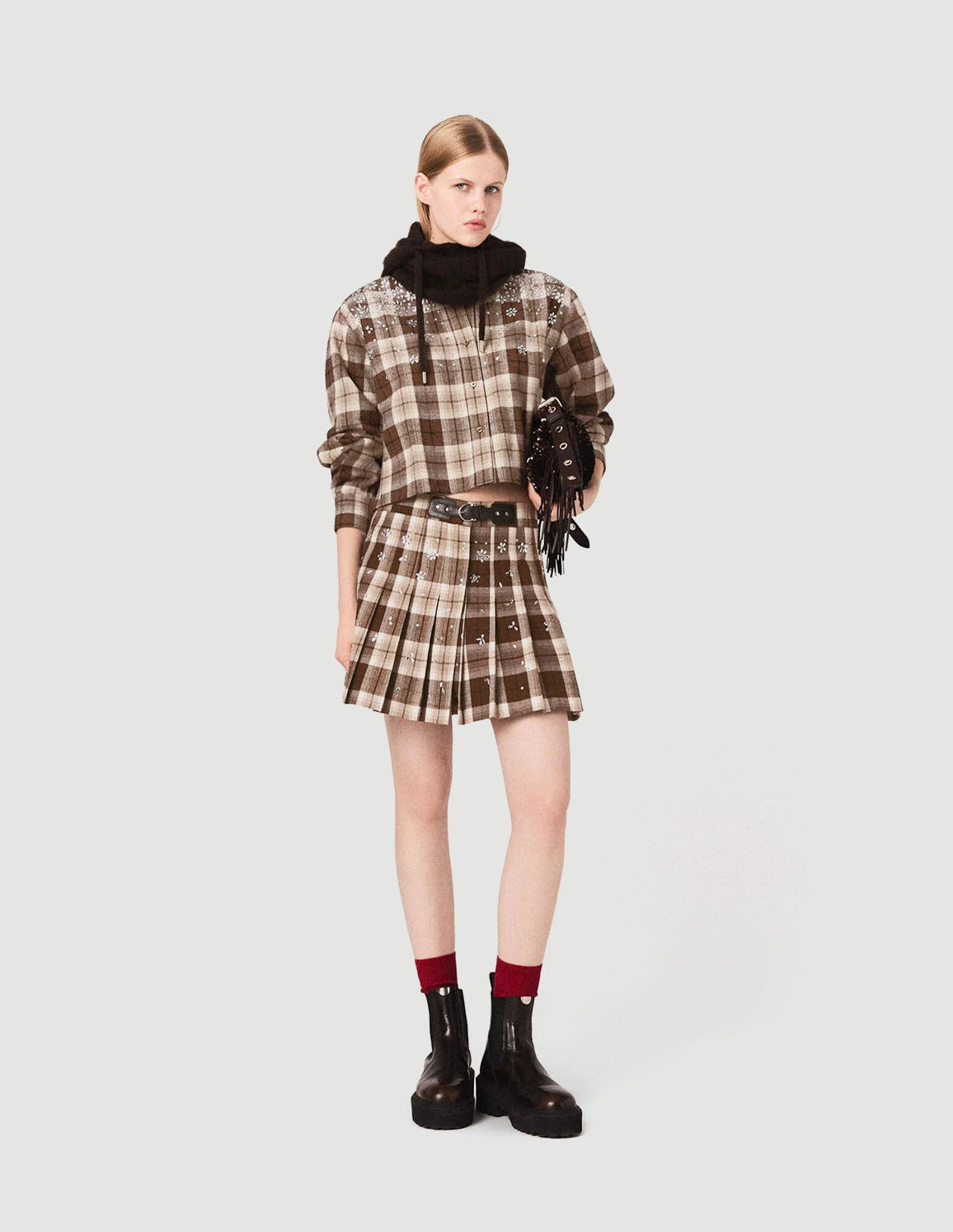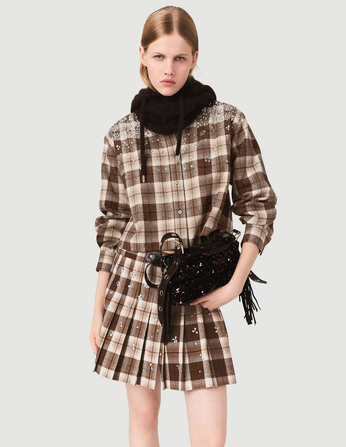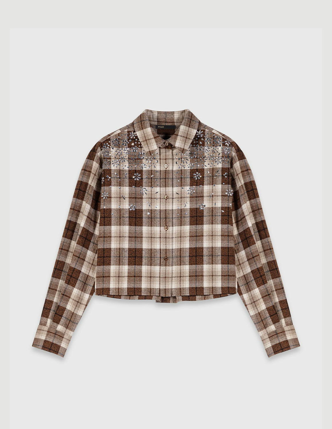 • Here, the checked flannel has a supple drape and is distinguished by delicate rhinestone embroidery on the top. The shirt's simple lines are thus illuminated with a refined sparkle, transforming a basic into a statement piece.