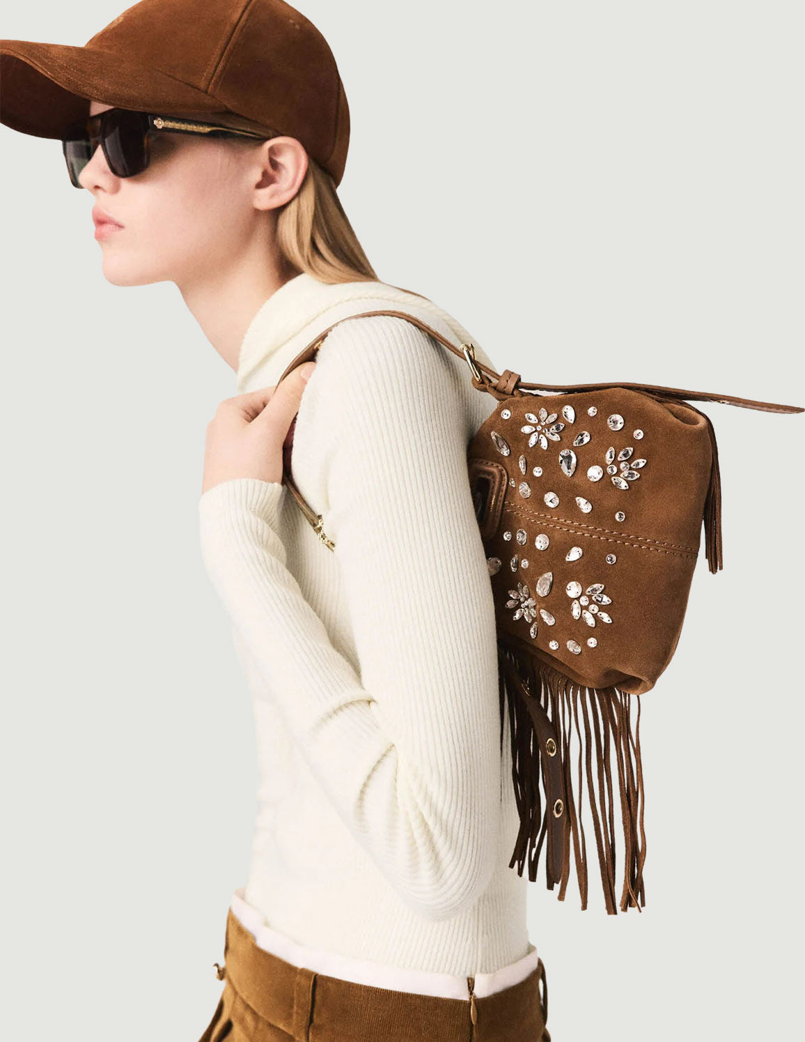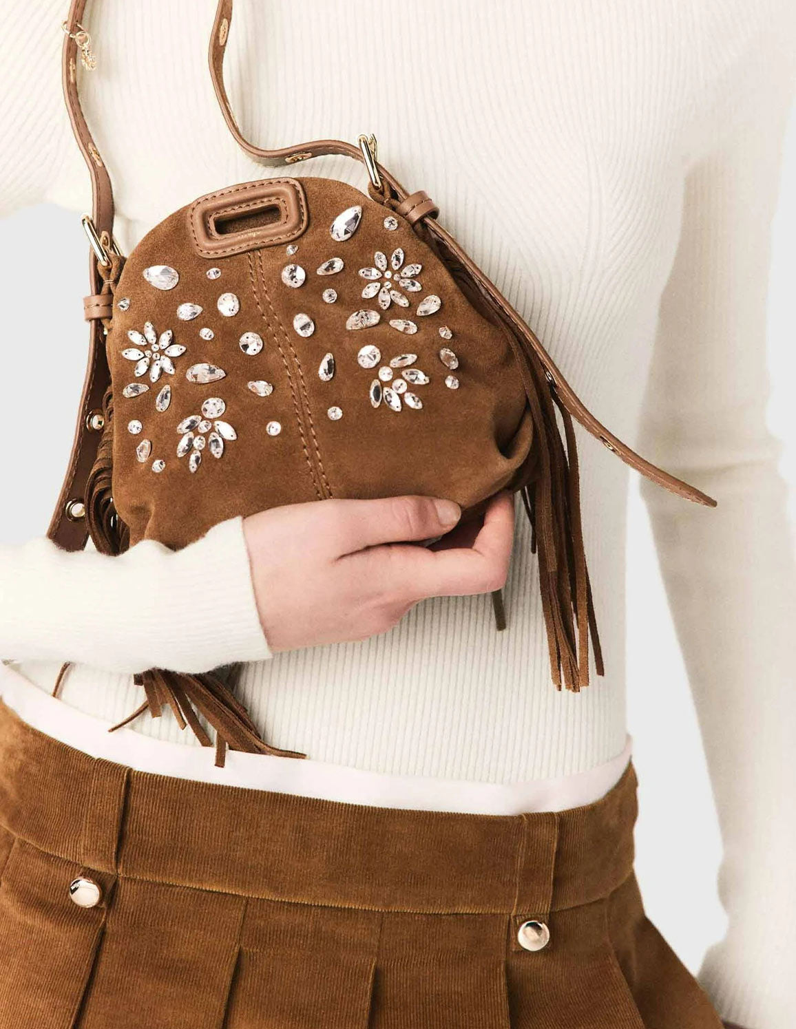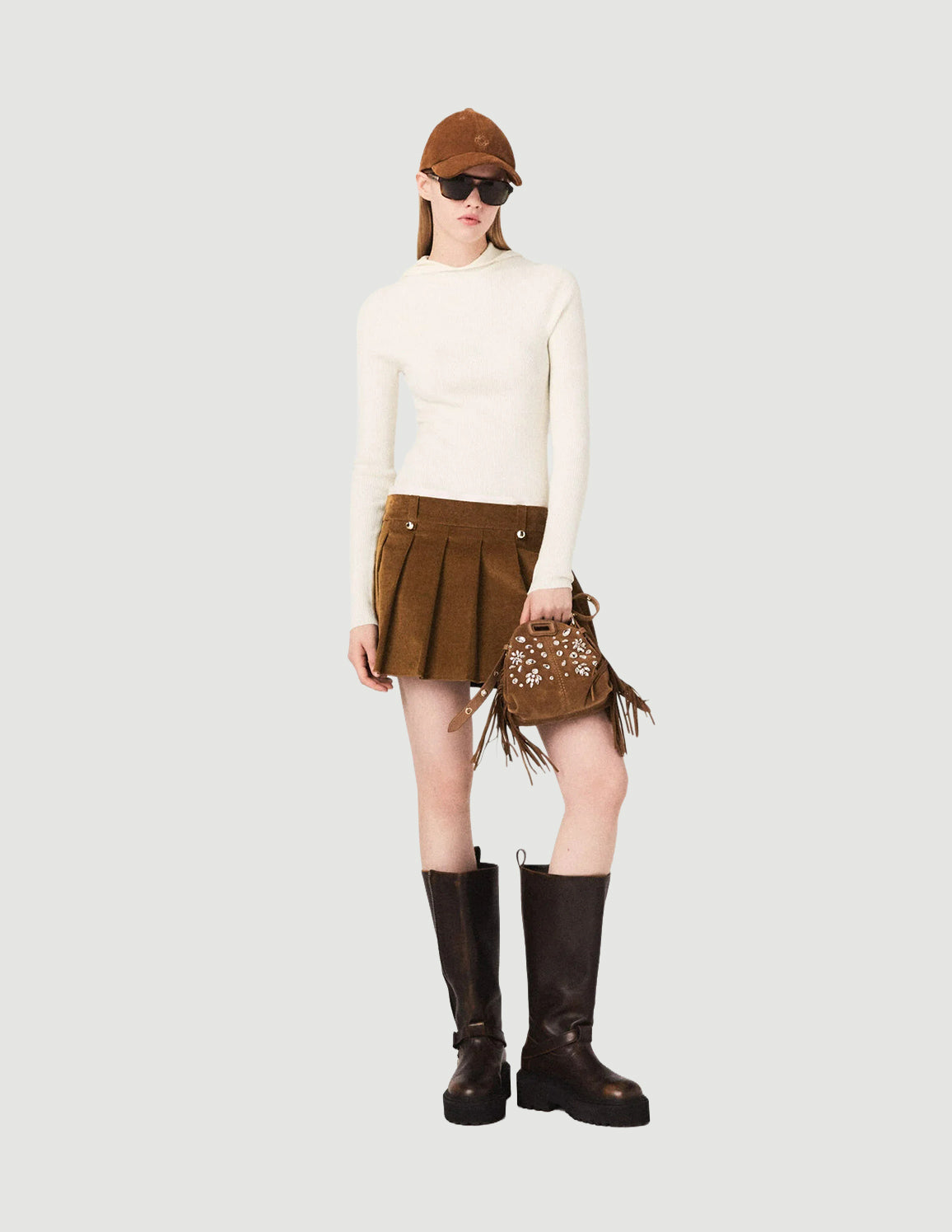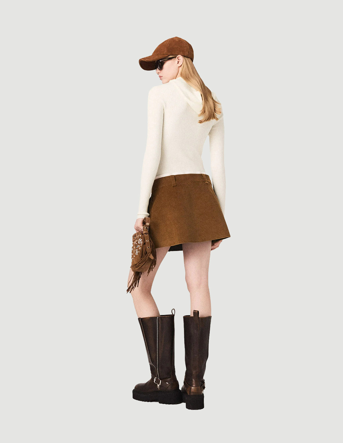 • Wear it with a knitted hooded bodysuit and accessorise your look with leather boots, a cap, sunglasses and a rhinestone fringed bag.