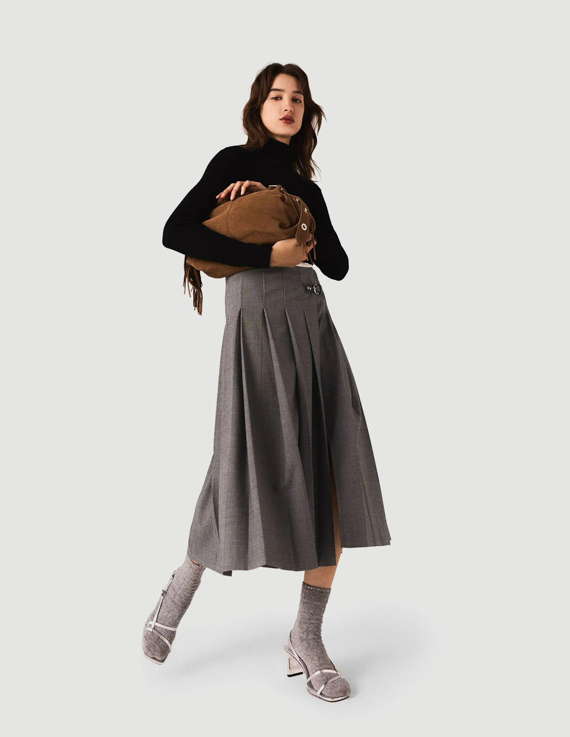 • Long pleated skirt