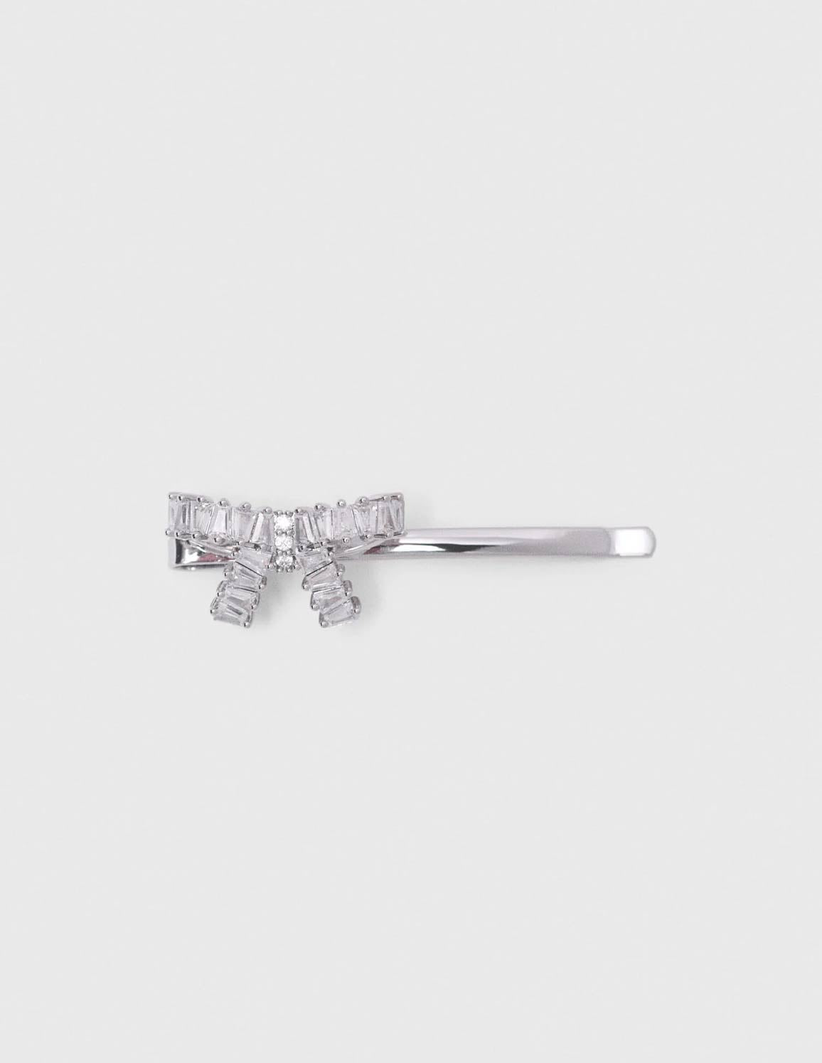 • This sculptural, silver-plated brass barrette is set with transparent crystals of different sizes to catch the light from every angle.