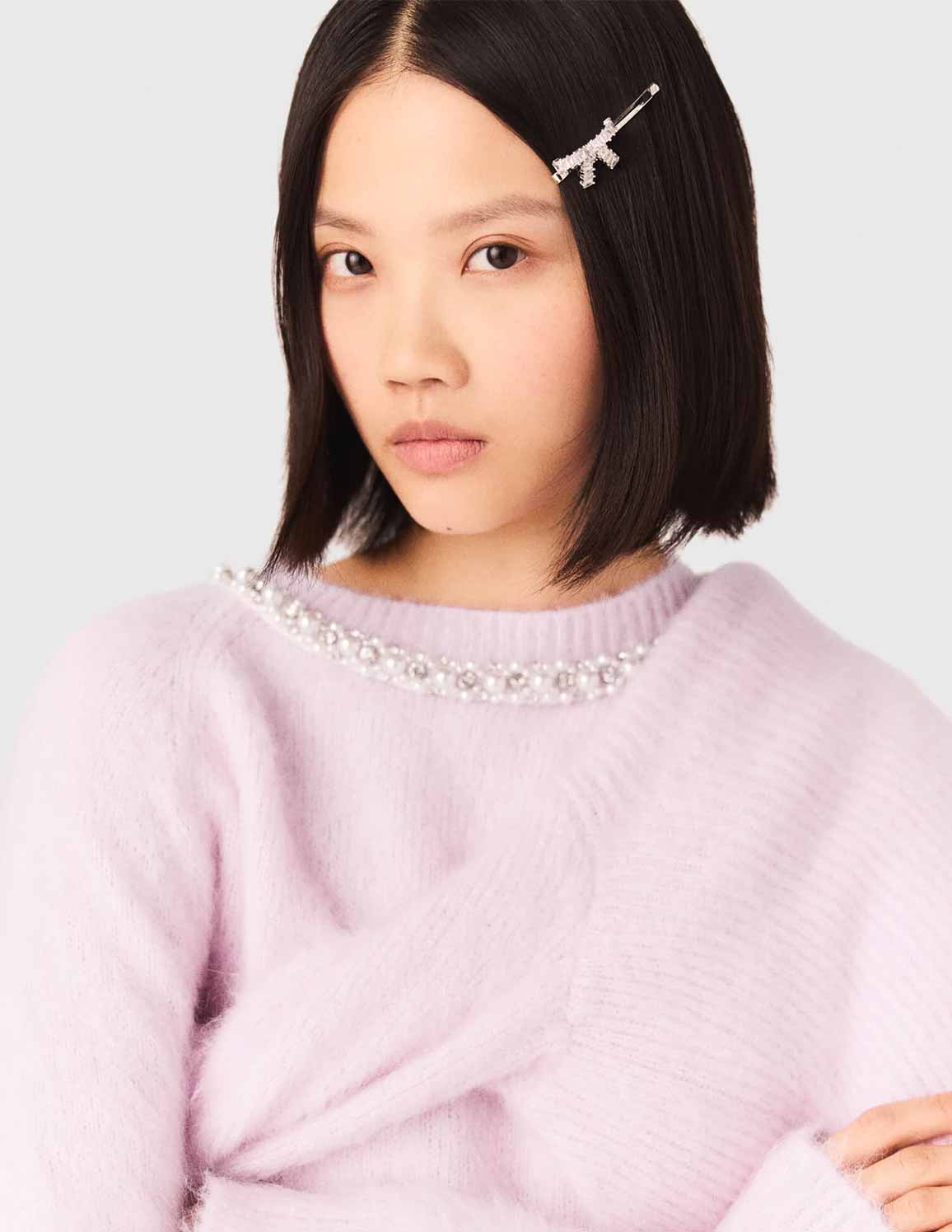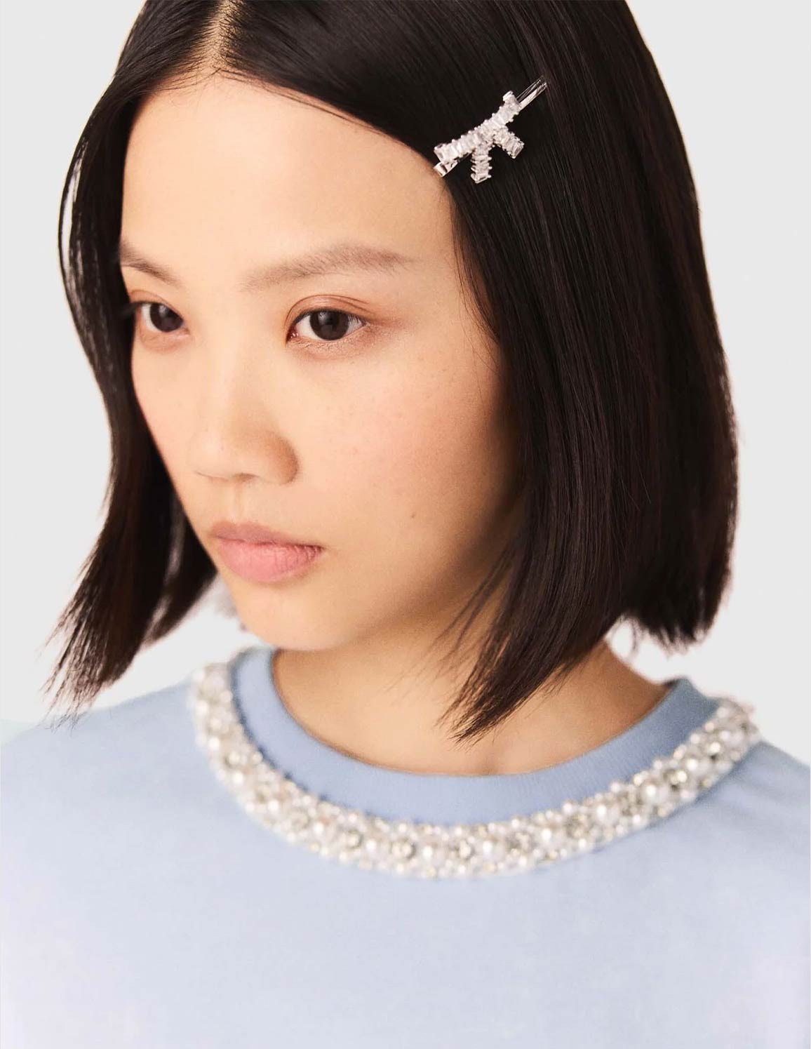 • A breath of sparkle and modernity comes to the Maje wardrobe with this silver barrette. A piece of jewellery that brings radiance to the Chinese New Year capsule collection.
