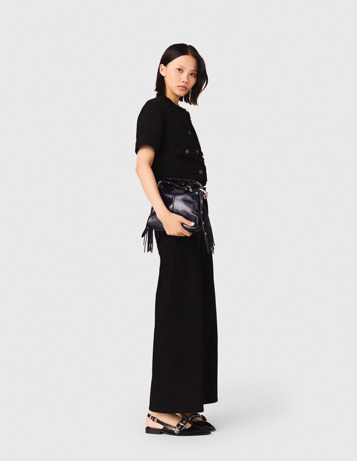 All returned items must be in new and unused condition, with all original tags and labels attached. All returns must be postmarked within fourteen (14) days starting from the date of delivery. Returns will only be accepted if accompanied by the original invoice in the online order package (Point of Sale )and the website invoice. You must visit the nearest maje store to return or exchange the items.