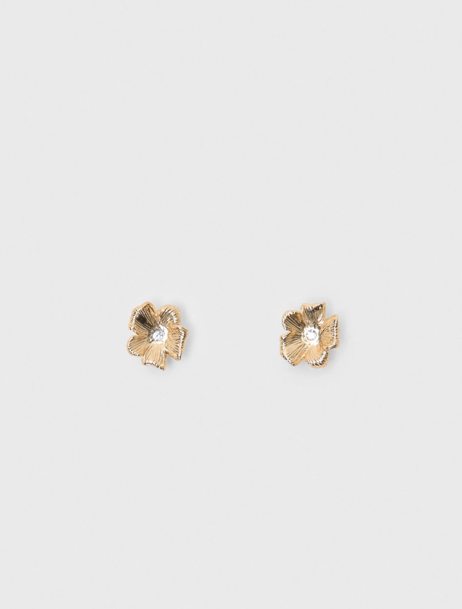 • These brass earrings play with the light thanks to their finely engraved texture, creating a delicate flower enhanced by a sparkling central transparent faceted charm. The heart clasp, engraved with the brand name, adds a subtle and sophisticated signature touch.