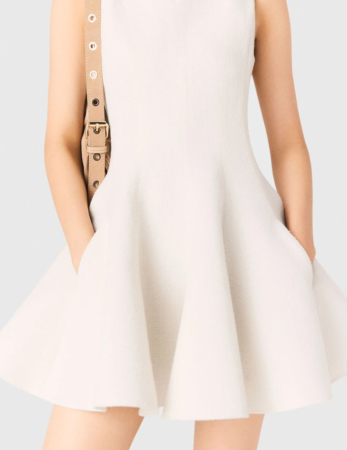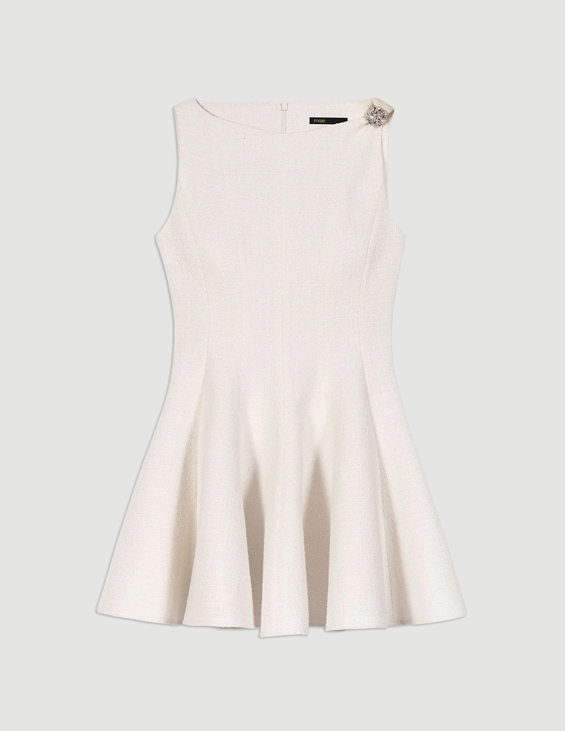 • Short flared ecru tweed-effect dress