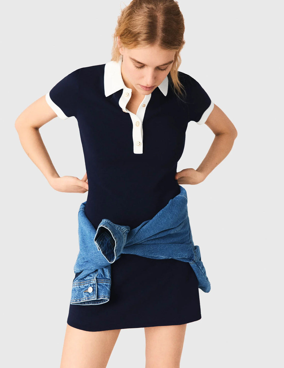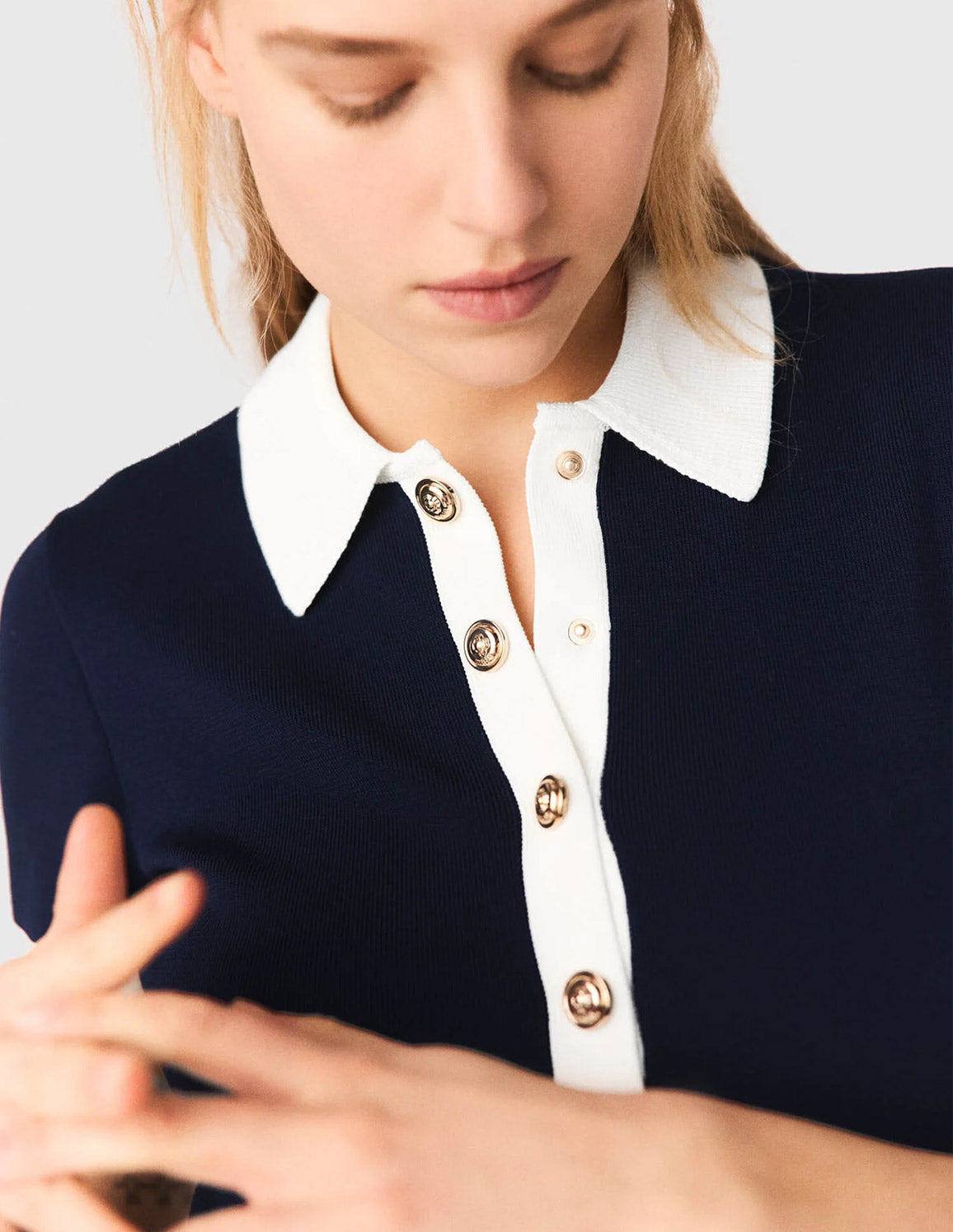 • Contrasting white polo collar