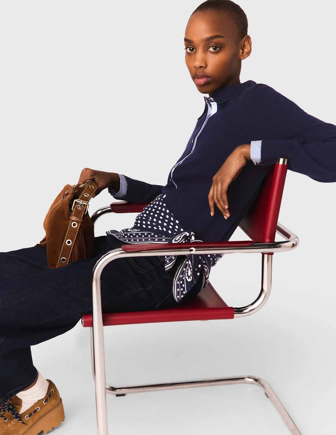 • Pair it with raw denim, suede boat shoes and the matching Miss M mini, and accentuate the waist with a navy blue scarf.