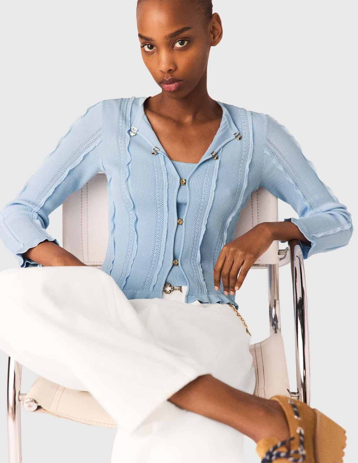 • Twin-set: cropped openwork knit cardigan and tank top