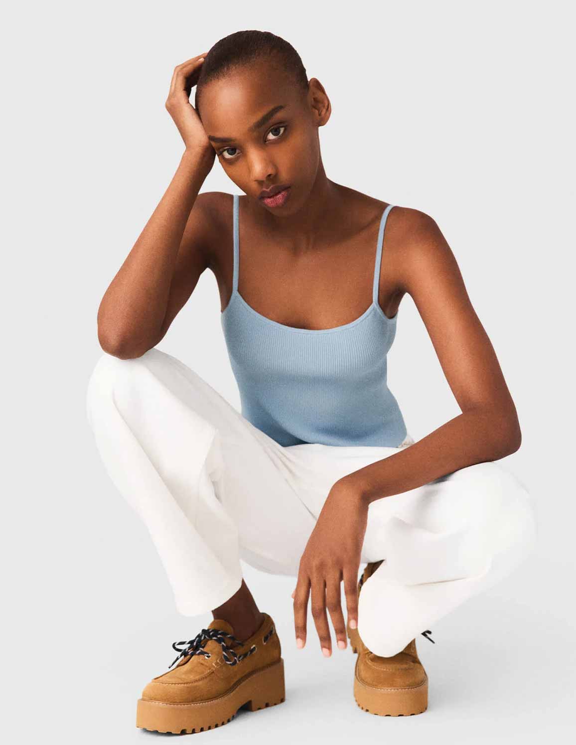 • Thin straps on the matching top