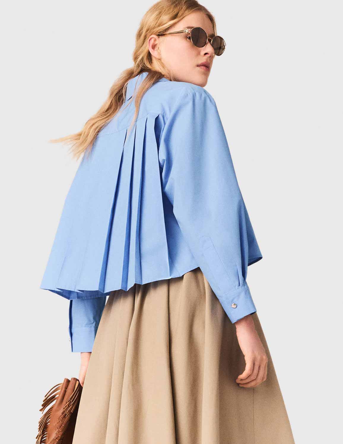 • Pleated back embroidered shirt