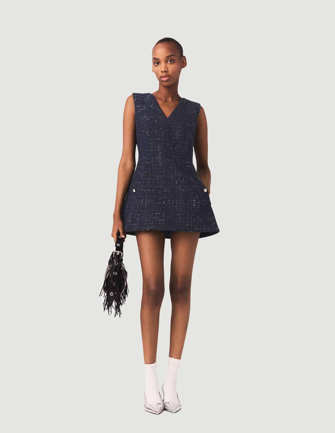 2-in-1 shiny tweed dress