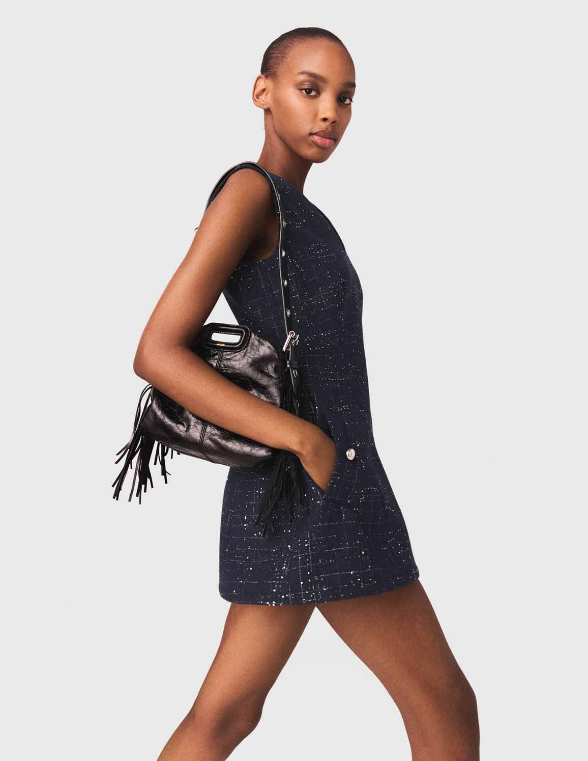 • Pair it with silver slingback pumps, mid-length socks and a Miss M mini bag for a chic look with a preppy touch.