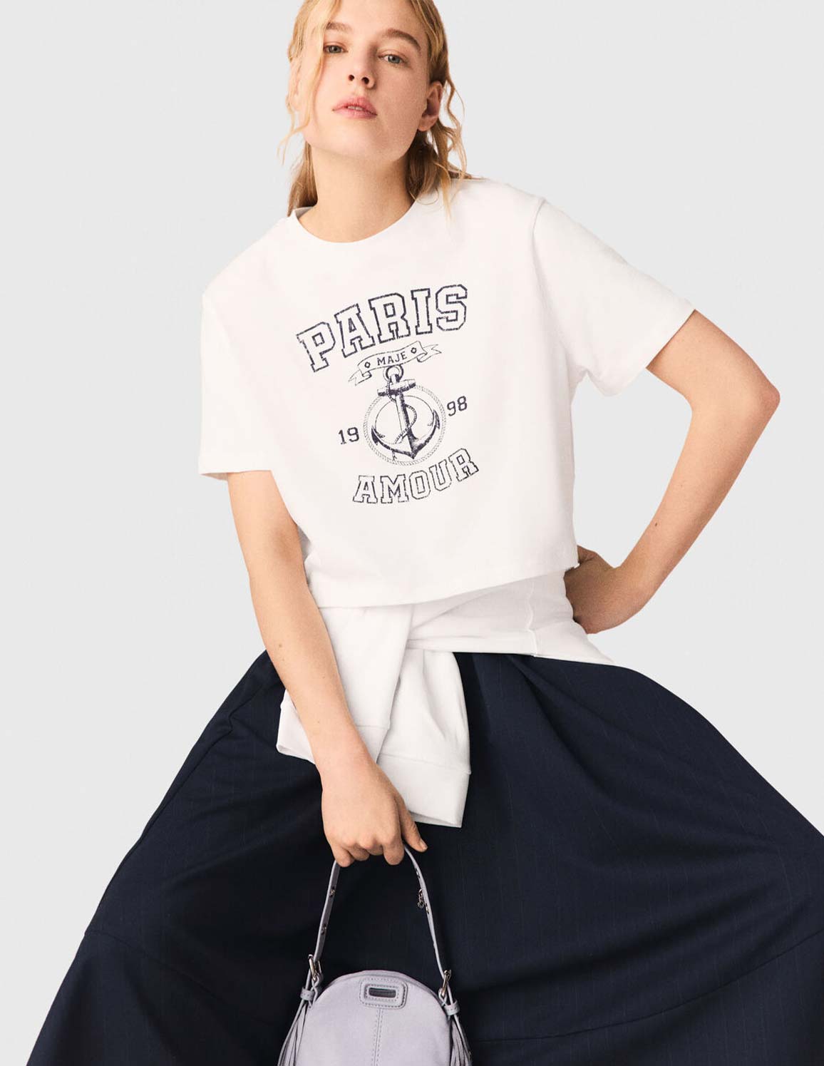 • The Maje woman embraces the nautical spirit, drawing inspiration from the freshness and power of the coastline to create a free and luminous style.