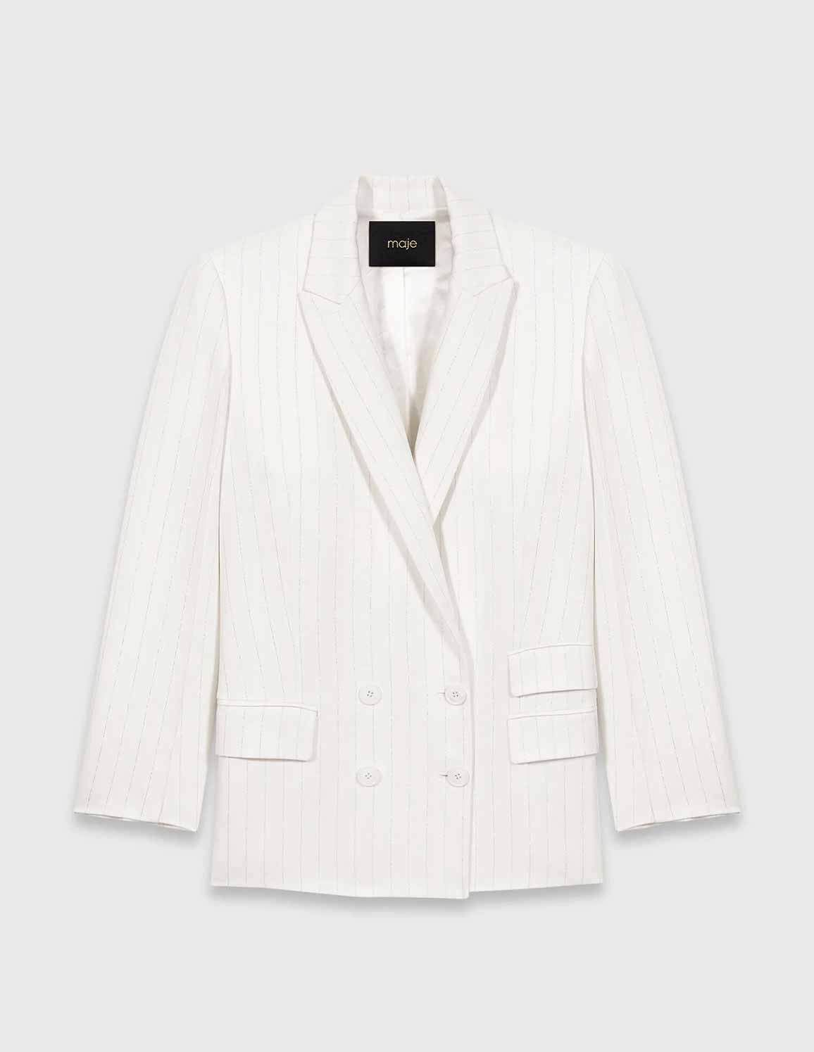 • This ecru pinstripe blazer combines a slightly oversized straight cut with defined shoulders and meticulous finishes, creating a structured, contemporary look.